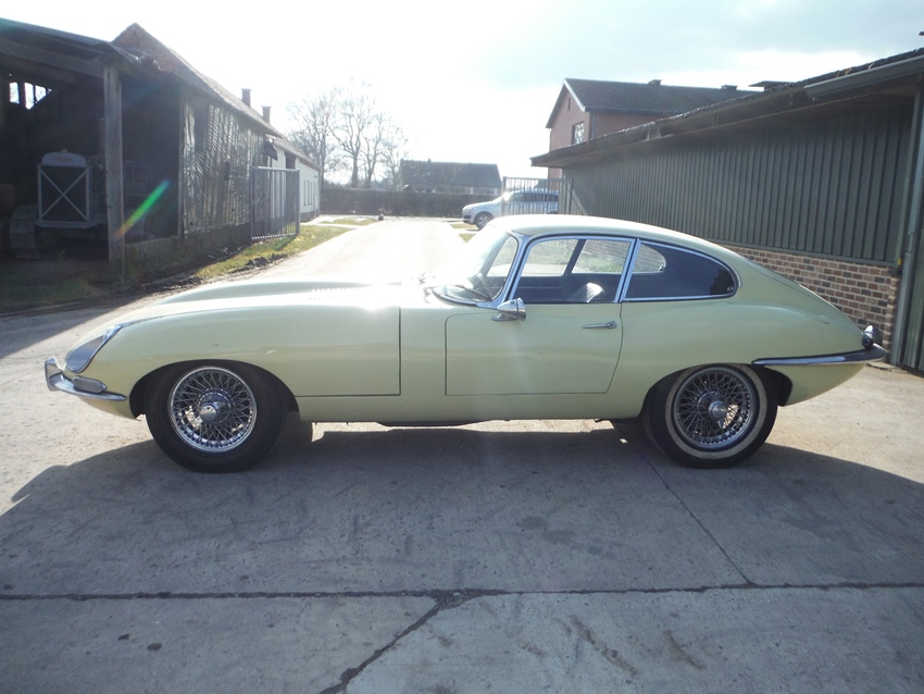 For sale is this 1967 Jaguar E-Type Series 1 and a half in running and driving condition. Very nice original car with all original interior, delivered new in the actual Primrose Yellow, might benefit from a new coat of paint.