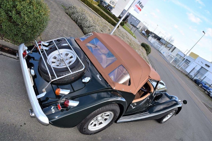 Concours gerestaureerde Morgan Plus 8 roadster. Nieuwe racing green schildering met nieuwe softtop, nieuwe tonneau, nieuwe tapijten en compleet nieuw interieur. Alles in ons eigen atelier hersteld. Opties = speciale serie 'Louis Vuitton' met originele Louis Vuitton valies en motorkapbescherming.