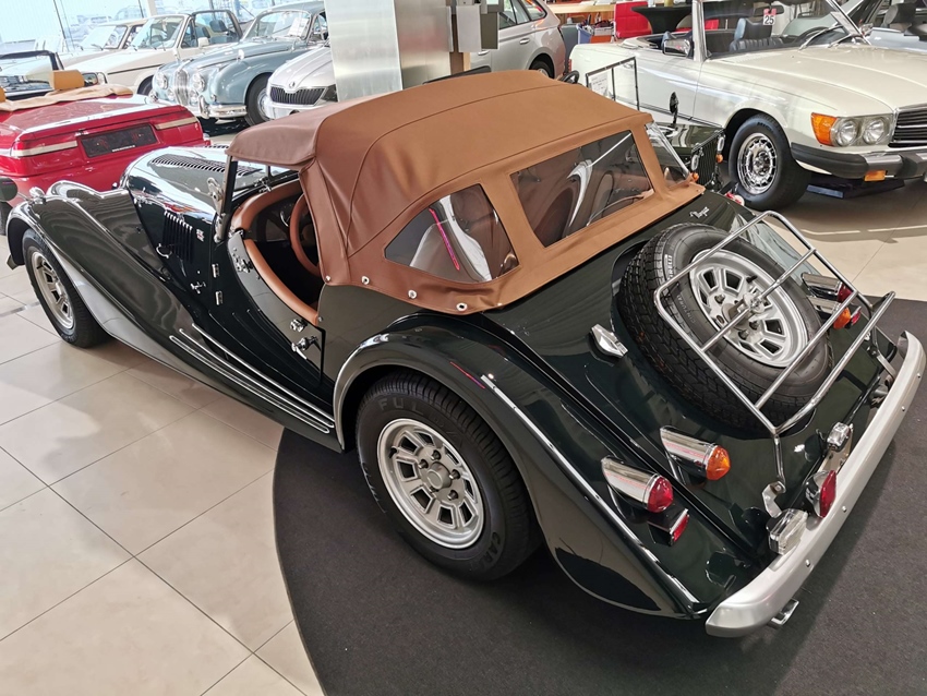 Concours gerestaureerde Morgan Plus 8 roadster. Nieuwe racing green schildering met nieuwe softtop, nieuwe tonneau, nieuwe tapijten en compleet nieuw interieur. Alles in ons eigen atelier hersteld. Opties = speciale serie 'Louis Vuitton' met originele Louis Vuitton valies en motorkapbescherming.