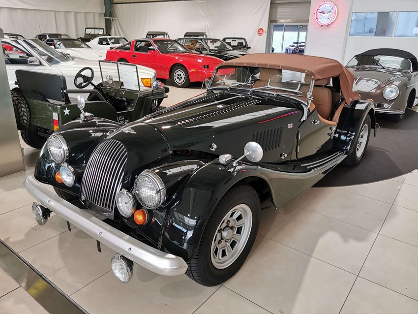 Concours gerestaureerde Morgan Plus 8 roadster. Nieuwe racing green schildering met nieuwe softtop, nieuwe tonneau, nieuwe tapijten en compleet nieuw interieur. Alles in ons eigen atelier hersteld. Opties = speciale serie 'Louis Vuitton' met originele Louis Vuitton valies en motorkapbescherming.