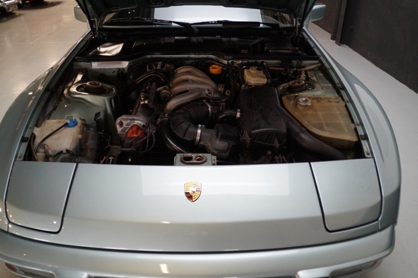 Een bijzonder nette en originele Porsche 944 uit 1986, in een zeldzame fabriekskleur die subtiel wisselt tussen mintgroen en zilverblauw, afhankelijk van het licht. Deze kleur benadrukt de lijnen van de 944 op elegante wijze en geeft de auto een onderscheidend karakter dat je zelden tegenkomt.