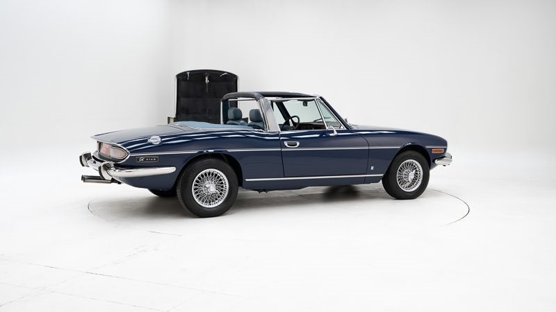 De Triumph Stag is een van de meest herkenbare Britse cabrio’s uit de jaren ’70, geliefd om zijn stijlvolle ontwerp en zijn zeldzame V8-motor. Dit exemplaar uit 1974 werd grondig en professioneel gerestaureerd en combineert een frisse presentatie met een authentieke rijervaring.