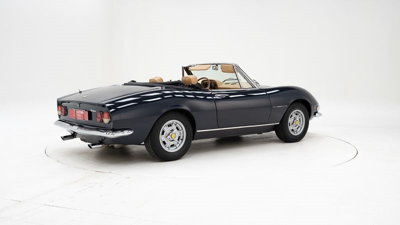 De Fiat Dino Spider uit 1967 is een toonbeeld van Italiaanse elegantie en sportieve flair. Dit exemplaar, in donkerblauw met manuele transmissie, werd professioneel gerestaureerd en bevindt zich in een eerlijke, authentieke staat. Oorspronkelijk geleverd met een 2.0 liter motor, werd dit exemplaar uitgerust met de krachtigere 2.4 liter motor van hetzelfde model, wat zorgt voor een extra dosis rijplezier en betrouwbaarheid. Met zijn combinatie van stijl, prestaties en verzamelwaarde is dit een bijzonder aantrekkelijke klassieker voor liefhebbers van Italiaanse cabrio’s uit de jaren ’60.