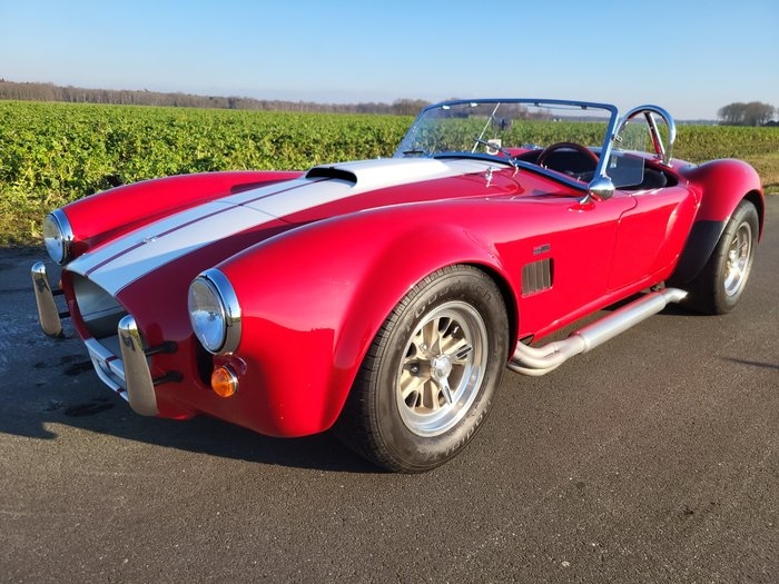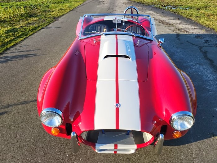 Shelby Cobra 427 Replica 1992 Deze Cobra is gebouwd door Classic Roadsters LTD in Fargo, USA en is werkelijk een prachtige verschijning. In de ultieme kleurencombinatie rood / wit. Carrosserie: De carrosserie is in bijna perfecte staat, lichte steenslag aan de voorzijde, maar geen rare plekken of krassen. De witte strepen zijn prachtig meegespoten in de lak. De passingen van de deuren en motorkap en kofferklep zijn prima en zoals het hoort. Motorisch: De Cobra is voorzien van een 427 (7.0) Liter V8 met injectie. Deze is genoeg om 261 KW op te brengen en je in je stoel te drukken. Deze V8 is gekoppeld aan een handgeschakelde Tremec 5-versnellingsbak waarmee de combinatie compleet is. Vooral als het luchtfilter verwijderd is, en de 8 prachtige inlaatkelken zichtbaar worden, toont het motorblok zijn schoonheid. Zo heeft Caroll Shelby in 1965 ook de originele Cobra bedacht. Enkel heeft deze Cobra injectie in plaats van een carburateur motor waarmee deze wel weer een stuk betrouwbaarder. Interieur: Het interieur is zeer mooi, met originele kuipstoelen en Houten stuurwiel. Het dashboard is mooi leder gestoffeerd en straalt luxe uit. evenals de meter met hun chromen uitstraling. Bij de Cobra word ook het originele dekzeil geleverd. Deze is ook te zien bij de foto's, deze kun je met drukknoppen monteren en eventueel de bestuurders of bijrijders kant open-ritsen. Onderstel: De bodem van de Cobra is zeer netjes, en heeft geen rare plekken of beschadigingen. En is opgebouwd met een ''boxed frame'' dus sterker als de reguliere Cobra's. De banden zijn in zeer goede conditie. Evenals de originele gegoten velgen. Kenteken/registratie: De Cobra is door ons geïmporteerd en door ons bij de Nederlandse RDW (Rijks Dienst Wegverkeer) volledig gekeurd en nagekeken. Dus deze Cobra kan overal in Europa geregistreerd worden met deze Europese Toelating. Hij komt rechtstreeks uit de Verenigde Staten, dus het is een schone registratie. De auto is dus met USA papieren geïmporteerd naar Nederland. Ook voor Hulp bij transport of registratie kunnen wij als verkopende partij u bij helpen. Kortom een prachtige zeldzame auto op Nederlands kenteken, klaar voor de komende zomermaanden
