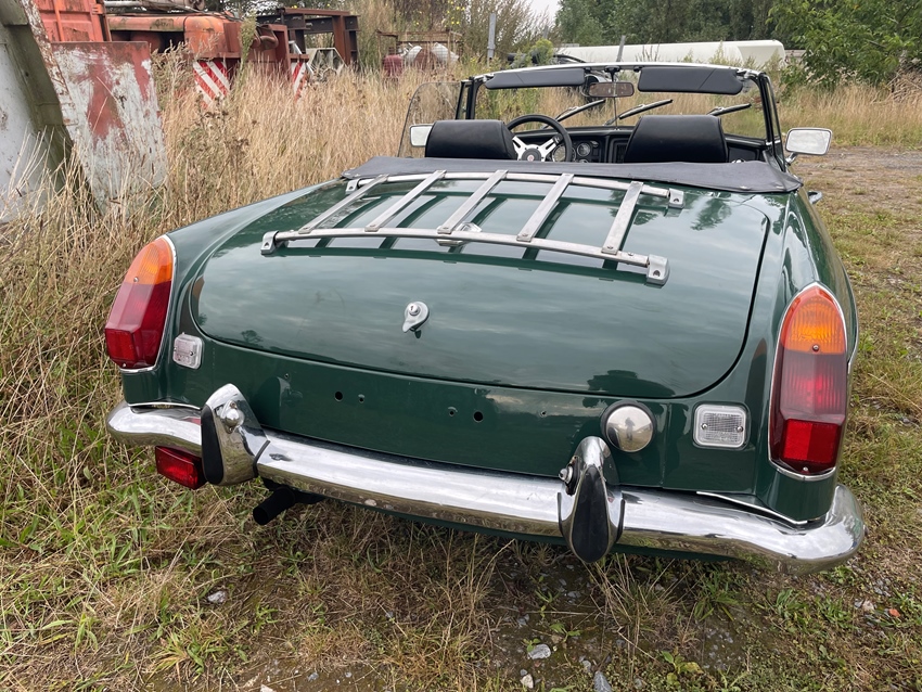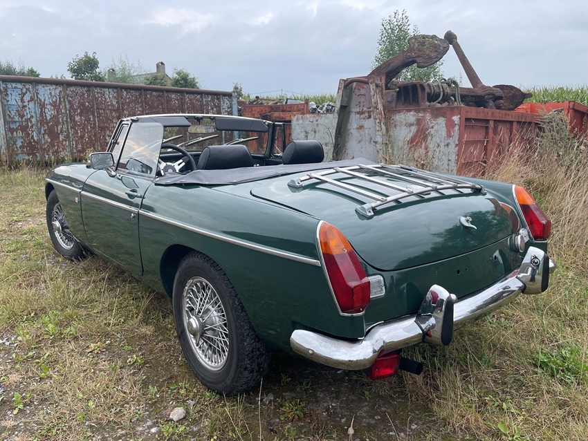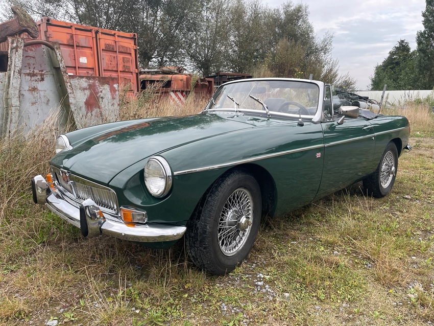 MG B 1977 1.8 Britisch racing green In zeer goede staat! Technisch perfect in orde gebracht. Motor draait als een klokje. Geen spatje roest, chassis perfect! Reeds vele onderdelen vervangen. Interieur en cabriokap in perfecte staat. Nieuwe vering achter, nieuwe banden.