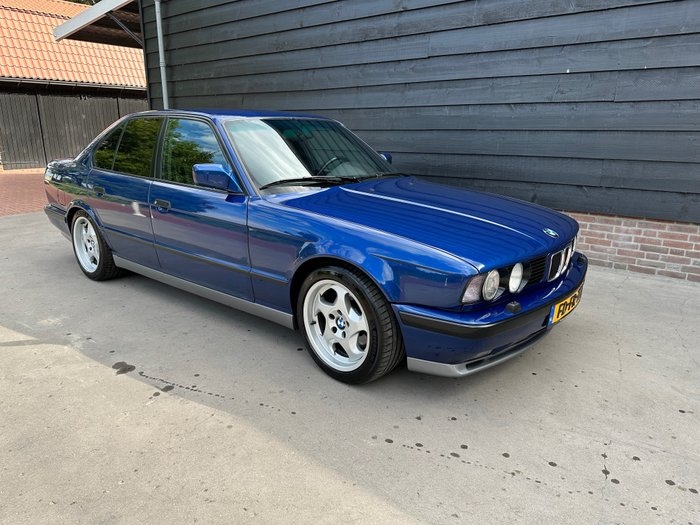 BMW M5 3.8 E34 Nürburgring Edition, super nette mooie originele staat.!!! Deze Super nette M5 uit de E34-generatie is uitgerust met het Nürburgring Pack, bredere achterwielen en een dikkere stabilisatorstang aan de achterzijde. Onder de motorkap bevindt zich de 'S38B38' 3,8-liter zescilinder-in-lijn, die 335 pk naar de achterwielen levert via een handgeschakelde vijfversnellingsbak. De auto is afgewerkt in Avus Blue metallic met zwarte buffel leer wat nog super mooi toont en lekker zit. De lak is nog keurig met minimale gebruikssporen. De passingen van de plaatwerkdelen zijn keurig. De M5 staat op de juiste set 17-inch 'Throwing Star' lichtmetalen velgen, met correcte banden. Tot de fabrieksuitrusting behoren onder meer elektrisch verstelbare voorstoelen, vier elektrisch bedienbare ramen een boordcomputer, airconditioning & een elektrisch rolgordijn achterin. De enige aanpassingen zijn een roestvrijstalen catback-uitlaat en een lichter en uitgebalanceerd vliegwiel. De auto wordt geleverd in geheel originele staat , historische APK-certificaten, NAP km stand, gevarendriehoek en gereedschapskist. Een zeer goed onderhouden exemplaar van de gerenommeerde modern klassieke performance sedan. De auto wordt te koop aangeboden in uitstekende mechanische staat. Een groot aantal onderdelen is vervangen door de huidige eigenaar gedurende de 10 jaar dat hij eigenaar was. Het meest recente onderhoud aan deze M5 is in juni 2022 door de verkoper uitgevoerd en bestond uit het vervangen van motorolie, oliefilter en bougies. Er zijn geen elektrische of mechanische storingen bekend. Ander opmerkelijk onderhoud omvat de installatie van nieuwe draagarmen aan de voorkant, nieuwe bussen aan de achterkant, een nieuwe voorruit, nieuwe remschijven en blokken zijn nog aanwezig. Tevens alle nieuwe lijsten in de kleur zwart zijn ook nieuw en mee geleverd. Zeldzaam exemplaar voor de BMW liefhebber, Origineel Nederlands geleverde BMW M5 De BMW is te bezichtigen in Bruinisse , Nederland.