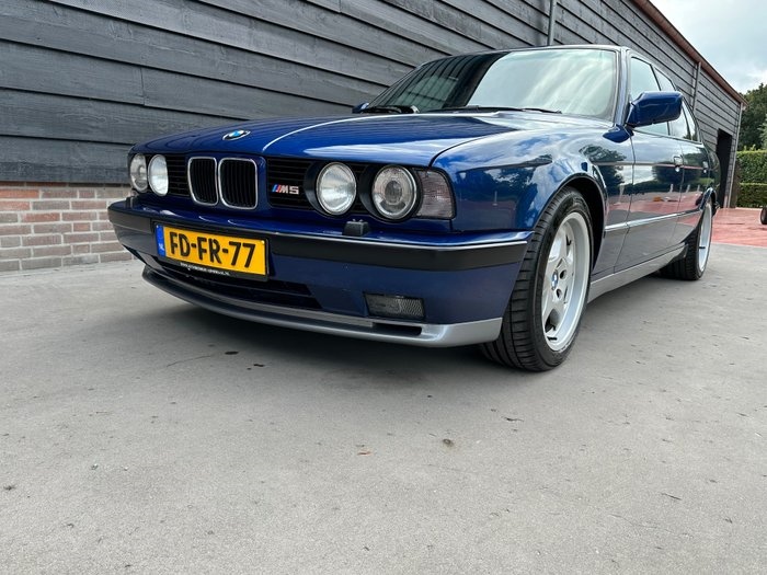 BMW M5 3.8 E34 Nürburgring Edition, super nette mooie originele staat.!!! Deze Super nette M5 uit de E34-generatie is uitgerust met het Nürburgring Pack, bredere achterwielen en een dikkere stabilisatorstang aan de achterzijde. Onder de motorkap bevindt zich de 'S38B38' 3,8-liter zescilinder-in-lijn, die 335 pk naar de achterwielen levert via een handgeschakelde vijfversnellingsbak. De auto is afgewerkt in Avus Blue metallic met zwarte buffel leer wat nog super mooi toont en lekker zit. De lak is nog keurig met minimale gebruikssporen. De passingen van de plaatwerkdelen zijn keurig. De M5 staat op de juiste set 17-inch 'Throwing Star' lichtmetalen velgen, met correcte banden. Tot de fabrieksuitrusting behoren onder meer elektrisch verstelbare voorstoelen, vier elektrisch bedienbare ramen een boordcomputer, airconditioning & een elektrisch rolgordijn achterin. De enige aanpassingen zijn een roestvrijstalen catback-uitlaat en een lichter en uitgebalanceerd vliegwiel. De auto wordt geleverd in geheel originele staat , historische APK-certificaten, NAP km stand, gevarendriehoek en gereedschapskist. Een zeer goed onderhouden exemplaar van de gerenommeerde modern klassieke performance sedan. De auto wordt te koop aangeboden in uitstekende mechanische staat. Een groot aantal onderdelen is vervangen door de huidige eigenaar gedurende de 10 jaar dat hij eigenaar was. Het meest recente onderhoud aan deze M5 is in juni 2022 door de verkoper uitgevoerd en bestond uit het vervangen van motorolie, oliefilter en bougies. Er zijn geen elektrische of mechanische storingen bekend. Ander opmerkelijk onderhoud omvat de installatie van nieuwe draagarmen aan de voorkant, nieuwe bussen aan de achterkant, een nieuwe voorruit, nieuwe remschijven en blokken zijn nog aanwezig. Tevens alle nieuwe lijsten in de kleur zwart zijn ook nieuw en mee geleverd. Zeldzaam exemplaar voor de BMW liefhebber, Origineel Nederlands geleverde BMW M5 De BMW is te bezichtigen in Bruinisse , Nederland.