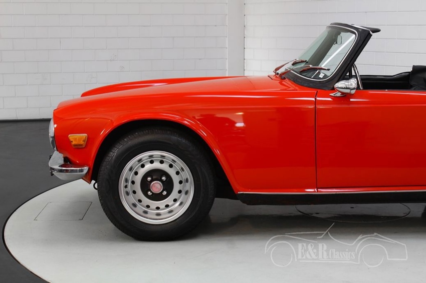 Triumph TR6 in Signal Red te koop De Triumph TR6 die we hier te koop aanbieden is echt een plaatje om te zien. Hij is in 2018 voorzien van een nieuw lakwerk in de prachtige kleur Signal Red. Een kleur die helemaal past bij een klassieker uit de jaren 70 en erg mooi combineert met alle chromen details. Het interieur verkeert in een zeer nette staat en is uitgerust met zwarte bekleding. Om het geheel af te maken is er gekozen voor een prachtig houten dashboard en Moto Lita stuurwiel. Kortom, een zeer compleet uitgeruste Triumph TR6 die helemaal klaar is voor zijn nieuwe eigenaar.