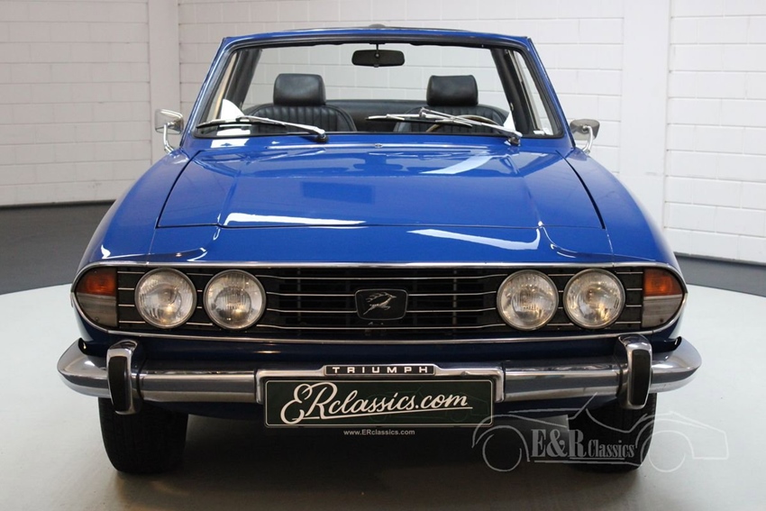 Deze uitgebreid gerestaureerde Triumph Stag uit 1975 heeft de fraaie 2.997cc V8 motor en handgeschakelde versnellingsbak met overdrive. De elegante carrosserie is uitgevoerd in een prachtige Royal Blue lak en heeft een T-bar met een goede zwarte soft top. Het mooie interieur is voorzien van een zwarte bekleding en houten details inclusief een houten stuur. De chromen onderdelen zijn in zeer goede staat. Zoekt u een Triumph Stag met een echt Engelse uitstraling? Voor meer informatie of een personal shopvideo, kunt u contact opnemen met één van onze verkopers.