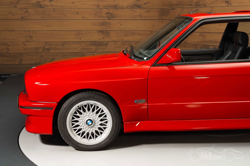 BMW E30 M3 in Zinnoberrot te koop bij E&R Classics Deze BMW E30 M3 die we hier te koop aanbieden is echt een plaatje om te zien. Hij is uitgevoerd in de prachtige fabriekskleur Zinnoberrot. Het rode lakwerk staat prachtig op de M3 en past helemaal bij zijn sportieve looks. Het interieur is uitgerust met zwarte lederen bekleding en verkeert in een zeer goede, originele staat. De BMW heeft elektrisch bedienbare ramen en spiegels en tevens een schuifdak. Kortom, een zeer mooie, originele BMW E30 M3 afkomstig van de eerste eigenaar die helemaal klaar is om de weg op te gaan.