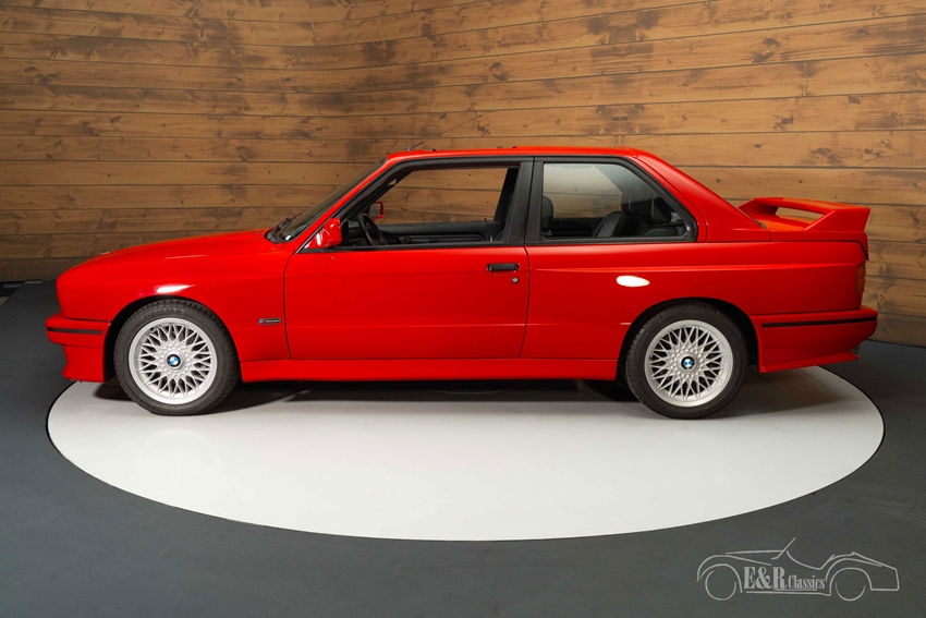 BMW E30 M3 in Zinnoberrot te koop bij E&R Classics Deze BMW E30 M3 die we hier te koop aanbieden is echt een plaatje om te zien. Hij is uitgevoerd in de prachtige fabriekskleur Zinnoberrot. Het rode lakwerk staat prachtig op de M3 en past helemaal bij zijn sportieve looks. Het interieur is uitgerust met zwarte lederen bekleding en verkeert in een zeer goede, originele staat. De BMW heeft elektrisch bedienbare ramen en spiegels en tevens een schuifdak. Kortom, een zeer mooie, originele BMW E30 M3 afkomstig van de eerste eigenaar die helemaal klaar is om de weg op te gaan.
