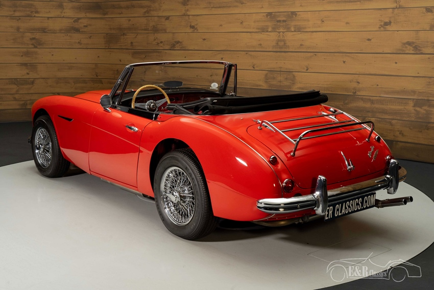 Austin Healey 3000 MK3 in topstaat te koop Deze Austin Healey is echt een plaatje om te zien. Het rode lakwerk staat deze klassieker prachtig en combineert erg mooi met de chromen spaakwielen en alle accessoires. Het interieur is voorzien van rode lederen bekleding met een houten dashboard en stuurwiel. Om het geheel af te maken is de Healey uitgerust met een zwarte soft top zodat u ook bij twijfelachtig weer heerlijk erop uit kunt trekken. Kortom, een prachtige Matching Numbers Austin Healey die helemaal klaar is voor veel mooie toertochten.