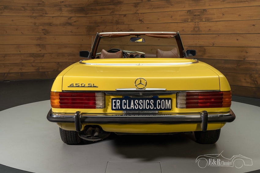 Mercedes-Benz 450 SL met spaakwielen te koop Bij het zien van deze Mercedes-Benz 450 SL uit 1973 krijgt u automatisch een glimlach op uw gezicht. Het gele lakwerk staat de klassieker prachtig en steekt mooi af tegen het donkerbruine interieur. Wat er helemaal een eyecatcher van maakt zijn de chromen spaakwielen. Dit zijn wielen die u niet snel tegenkomt op een Mercedes-Benz, maar werkelijk prachtig staan onder deze oldtimer. De Mercedes-Benz 450 SL is tevens voorzien van een donkerbruine soft top en een hard top in dezelfde kleur als de carrosserie. Ziet u zichzelf al rondtoeren in deze cabriolet?
