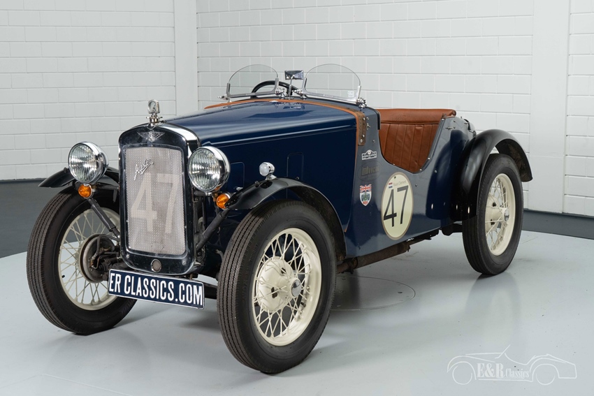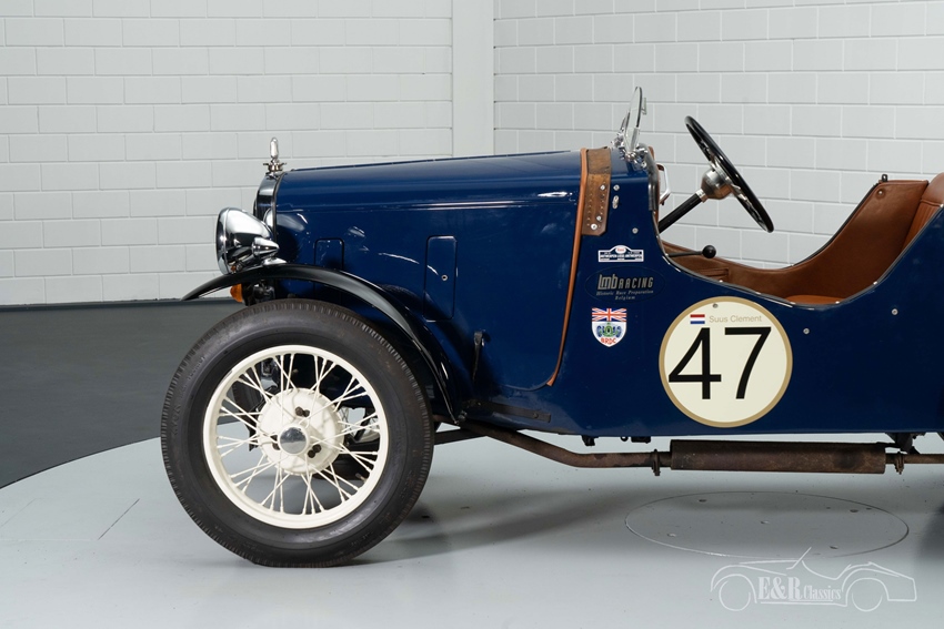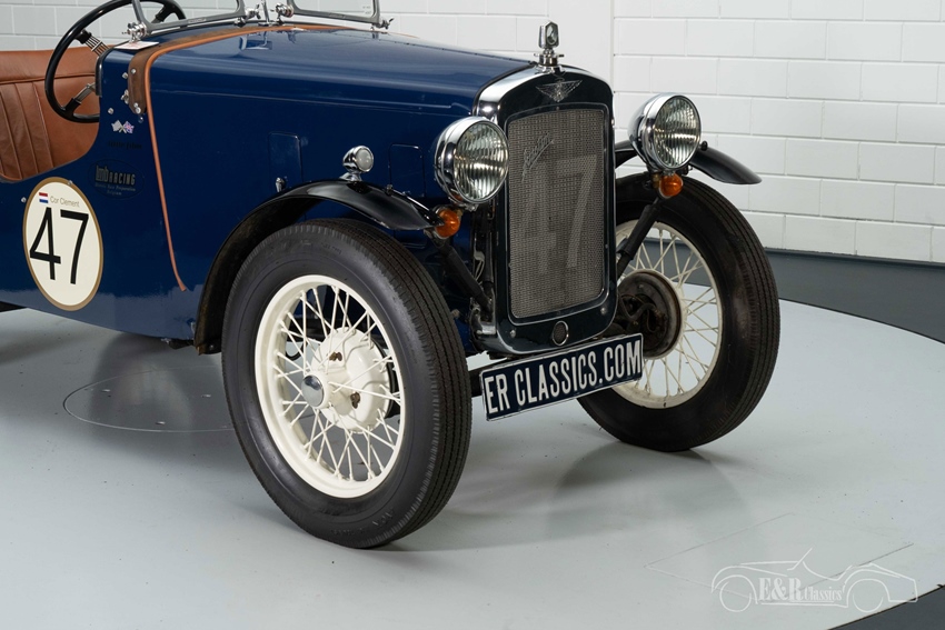 Austin Seven Sports pre-war racer te koop bij ER Classics Met zijn prachtige carrosserie, imposante grille, indrukwekkende ronde koplampen en grote spaakwielen is de Austin Seven Sports uit 1936 een unieke verschijning. De auto was destijds een echt statussymbool en trekt vandaag de dag nog steeds veel bekijks. Het interieur is net zo stijlvol als het exterieur, met donkerbruine lederen bekleding, een prachtig dashboard en klassiek stuurwiel dat helemaal past bij de vooroorlogse look van deze klassieker. De Austin Seven Sports is tevens uitgerust met een zwarte soft top zodat u bij twijfelachtig weer ook heerlijk kunt gaan toeren.