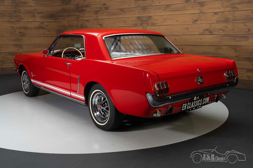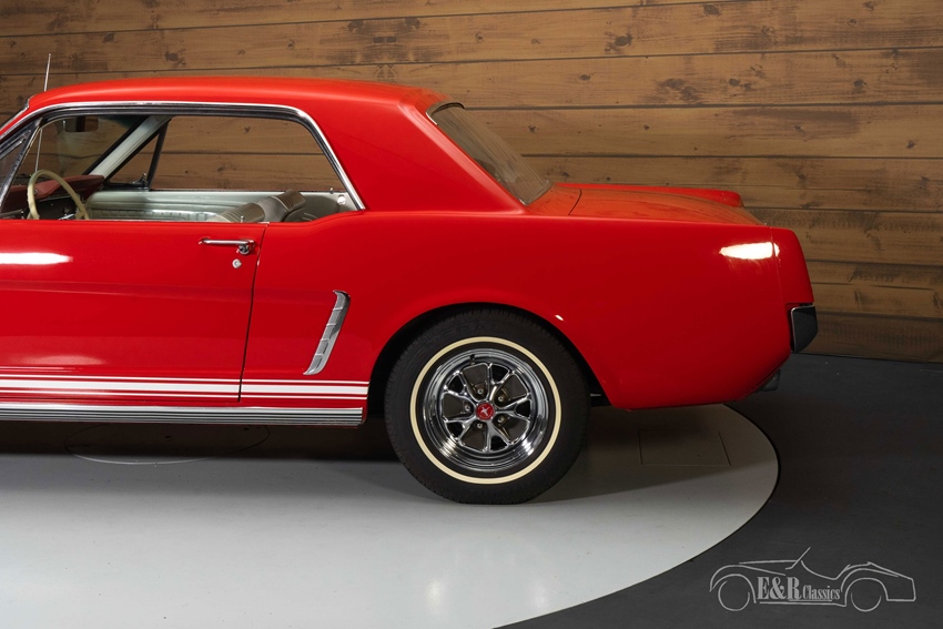 Ford Mustang Coupe met GT-Look te koop De Ford Mustang Coupe die we hier aanbieden is echt een plaatje om te zien. Hij is uitgevoerd in een prachtig rood lakwerk dat erg mooi combineert met het chroomwerk en helemaal past bij deze Amerikaanse klassieker. De Mustang is tevens voorzien van de gewilde GT-Look met de extra koplampen, GT tankdop en uitlaatdempers in de achterbumper. Het witte Pony interieur verkeert in een zeer nette staat en steekt mooi af tegen het rode lakwerk. Kortom: een zeer compleet uitgeruste 1965 Mustang in mooie kleurstelling die helemaal klaar is voor zijn nieuwe eigenaar.