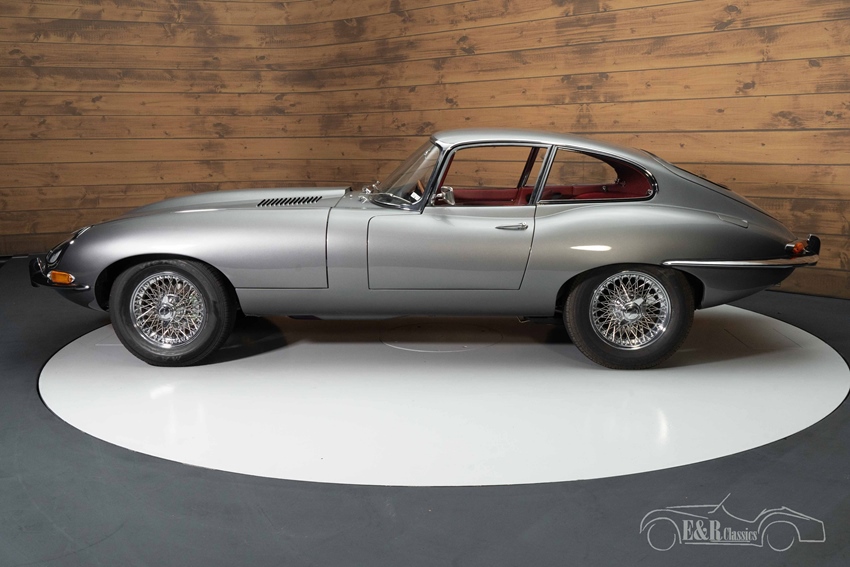Jaguar E-Type Series 1 Coupe in Gunmetal Grey te koop De Jaguar E-Type Series 1 Coupe die we hier te koop aanbieden is werkelijk een van de beste die op dit moment op de markt wordt aangeboden. De restauratie is van een topniveau en dat is er aan af te zien. De E-Type is uitgevoerd in de prachtige kleur Gunmetal Grey wat geweldig combineert met het chroomwerk en de chromen spaakwielen. Het interieur is uitgerust met rood lederen bekleding wat erg mooi afsteekt tegen het Gunmetal Grey lakwerk. Kortom, een prachtige E-Type Series 1 Coupe in geweldige kleurstelling die helemaal klaar is om de weg op te gaan.