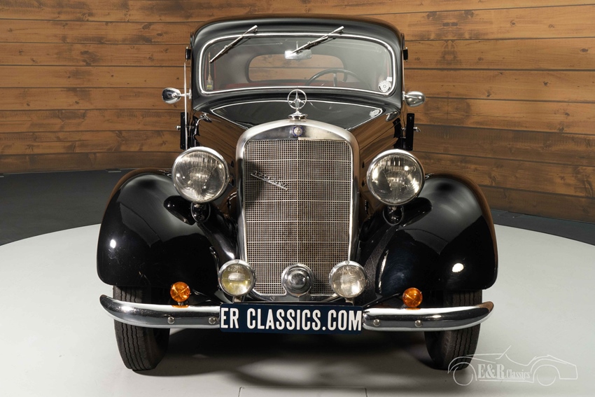 Zwarte Mercedes-Benz 170 VA te koop De Mercedes-Benz 170 VA die we hier te koop aanbieden is uitgevoerd in een zwart lakwerk dat erg mooi combineert met de imposante grille en alle chromen accessoires. Het stoffen interieur is rood uitgevoerd en steekt mooi af tegen het zwarte lakwerk. De combinatie van het zwart en rood maakt een stijlvolle verschijning van deze klassieke Mercedes-Benz.