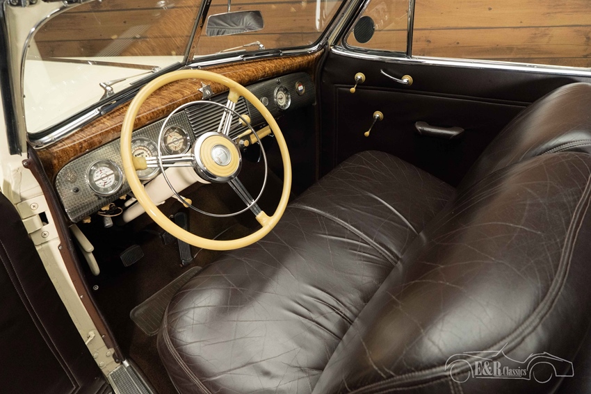 Buick Eight Special uit 1940 te koop De Buick Eight Special die we hier te koop aanbieden is echt een plaatje om te zien. Hij is uitgevoerd in een crèmekleurig lakwerk dat prachtig staat op de klassieker en erg mooi combineert met het imposante chroomwerk en de whitewalls. Het interieur van de Buick is uitgevoerd in donkerbruin leder en heeft een prachtig houten dashboard. De Buick is uitgerust met een beigekleurige soft top die er een mooi geheel van maakt.