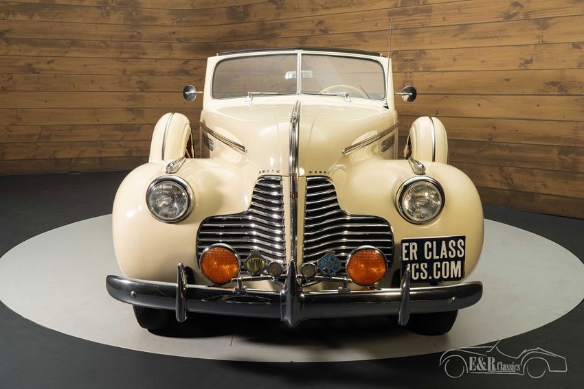 Buick Eight Special uit 1940 te koop De Buick Eight Special die we hier te koop aanbieden is echt een plaatje om te zien. Hij is uitgevoerd in een crèmekleurig lakwerk dat prachtig staat op de klassieker en erg mooi combineert met het imposante chroomwerk en de whitewalls. Het interieur van de Buick is uitgevoerd in donkerbruin leder en heeft een prachtig houten dashboard. De Buick is uitgerust met een beigekleurige soft top die er een mooi geheel van maakt.
