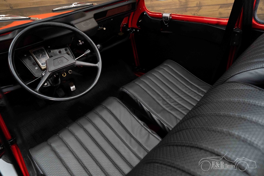 Rode Citroën 2CV te koop De Citroën die we hier te koop aanbieden ziet eruit zoals een echte 2CV eruit hoort te zien. Hij is uitgevoerd in een mooi rood lakwerk dat een echte eyecatcher maakt van deze klassieker. Het interieur is uitgerust met zwarte kunstlederen bekleding en er is gekozen voor een zwart roldakje dat u eenvoudig opent zodra de zon schijnt.