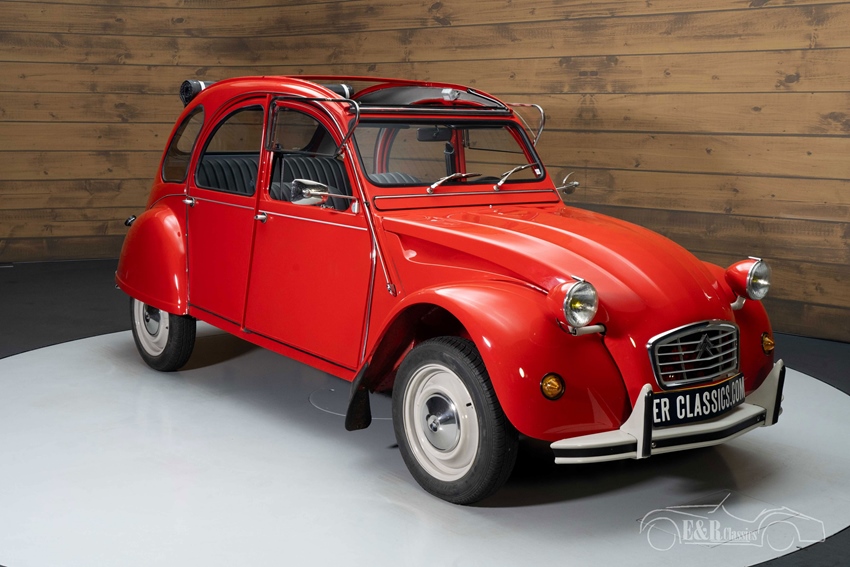 Rode Citroën 2CV te koop De Citroën die we hier te koop aanbieden ziet eruit zoals een echte 2CV eruit hoort te zien. Hij is uitgevoerd in een mooi rood lakwerk dat een echte eyecatcher maakt van deze klassieker. Het interieur is uitgerust met zwarte kunstlederen bekleding en er is gekozen voor een zwart roldakje dat u eenvoudig opent zodra de zon schijnt.