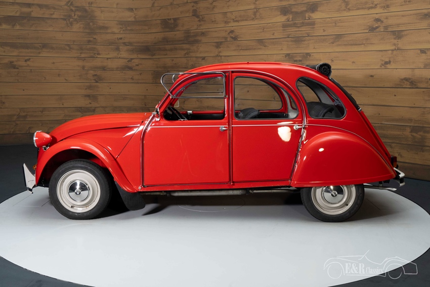 Rode Citroën 2CV te koop De Citroën die we hier te koop aanbieden ziet eruit zoals een echte 2CV eruit hoort te zien. Hij is uitgevoerd in een mooi rood lakwerk dat een echte eyecatcher maakt van deze klassieker. Het interieur is uitgerust met zwarte kunstlederen bekleding en er is gekozen voor een zwart roldakje dat u eenvoudig opent zodra de zon schijnt.