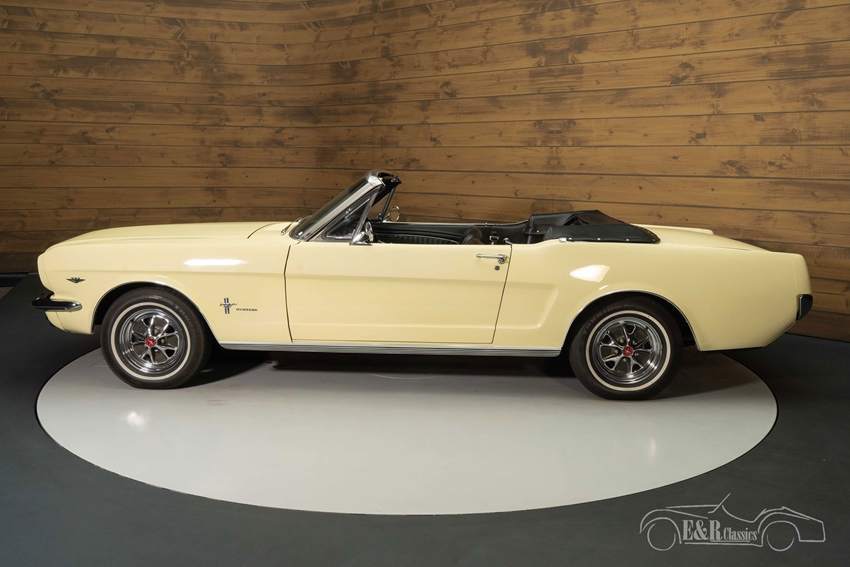 Ford Mustang Cabriolet | Gerestaureerd | 289 CUI V8 | 1965 Highlights: -    Gerestaureerd -    289 CUI V8 motor met automatische versnellingsbak -    Rem- en stuurbekrachtiging -    Hydraulische soft top Gerestaureerde 1965 Ford Mustang Cabriolet te koop Wij bieden te koop aan deze prachtige Ford Mustang Cabriolet uit 1965. Deze Mustang is afkomstig van een bekende klant van E&R Classics die de klassieker heeft ingeruild op een andere auto. De Ford is in het verleden gerestaureerd en wordt aangedreven door de 289 CUI V8 motor die gekoppeld is aan een automatische versnellingsbak. De Mustang heeft rem- en stuurbekrachtiging die zorgt voor extra rijcomfort. Ford Mustang Cabriolet uit 1965 te koop De Ford Mustang die we hier te koop aanbieden is echt een plaatje om te zien. Hij is uitgevoerd in een prachtig lichtgeel lakwerk dat helemaal past bij de looks van deze Amerikaanse oldtimer. Het interieur is uitgerust met een middenconsole, driespaaks stuurwiel en zwarte kunstlederen bekleding. De Mustang beschikt over een hydraulische soft top die u met een druk op de knop inklapt zodra de zon schijnt. Ford Mustang Cabriolet uit 1965 kopen? Bent u op zoek naar een Ford Mustang Cabriolet uit 1965? Laat dan uw gegevens achter via het contactformulier op deze pagina of bel direct met +31 416 751 393. Onze verkopers geven u graag antwoord op al uw vragen of maken zelfs een persoonlijke shopvideo voor u. Inkoop, inruil en bemiddeling mogelijk. Levering in België met oldtimer inschrijving mogelijk. U betaalt geen import-taksen. Wij kunnen helpen met financiering. Vraag ons verkoopteam.