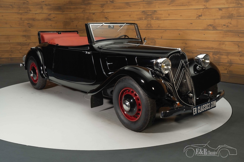 Uitvoerig gerestaureerde Citroën Traction 7C Cabriolet te koop Wij bieden te koop aan deze prachtige en zeer zeldzame Citroën Traction 7C Cabriolet uit 1937. Deze Citroën is afkomstig uit de privécollectie van een bekende klant van E&R Classics en is uitvoerig gerestaureerd. De Citroën Traction 7C Cabriolet is een zeer zeldzame verschijning, waar er slechts zo’n 450 van zijn gebouwd. Het vinden van een Traction Cabriolet is niet gemakkelijk, laat staan in de staat waarin dit exemplaar verkeert. De Citroën Traction was destijds een auto die ver vooruit liep op de concurrentie en was de eerste in massa geproduceerde monocoque-auto met voorwielaandrijving. Verder is deze klassieker uitgerust met onafhankelijke wielophanging en hydraulische remmen, ontwikkelingen die zeer innovatief waren in de jaren 30. De Citroën wordt aangedreven door de 1628cc 4-cilinder motor die gekoppeld is aan een handgeschakelde 3 versnellingsbak.