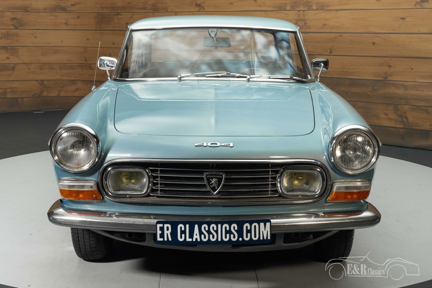 Lichtblauwe Peugeot 404 Coupe te koop Het lichtblauwe lakwerk van de Peugeot 404 Coupe contrasteert schitterend met de zwarte kunstlederen bekleding, wat een tijdloze uitstraling geeft. De strakke lijnen van de carrosserie benadrukken de verfijnde styling van Pininfarina, terwijl de klassieke velgen de authentieke look compleet maken. Het interieur ademt klasse, met een fraai dashboard en comfortabele stoelen die perfect combineren met de buitenkant.