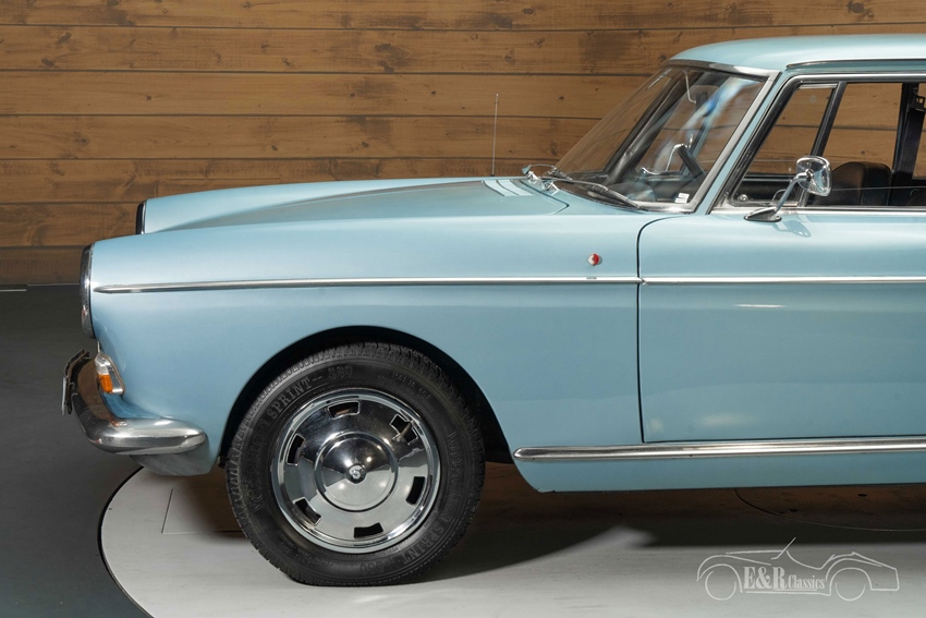 Lichtblauwe Peugeot 404 Coupe te koop  Het lichtblauwe lakwerk van de Peugeot 404 Coupe contrasteert schitterend met de zwarte kunstlederen bekleding, wat een tijdloze uitstraling geeft. De strakke lijnen van de carrosserie benadrukken de verfijnde styling van Pininfarina, terwijl de klassieke velgen de authentieke look compleet maken. Het interieur ademt klasse, met een fraai dashboard en comfortabele stoelen die perfect combineren met de buitenkant.