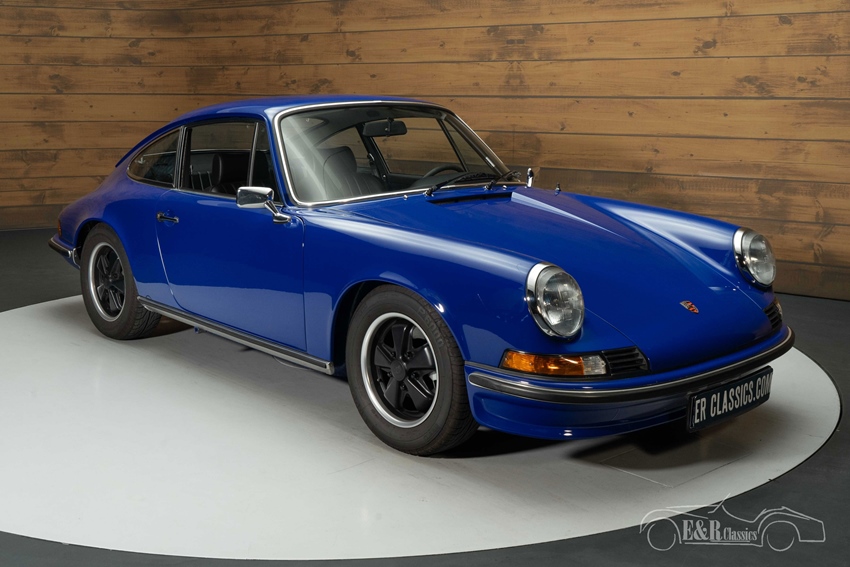 Blauwe Porsche 911T Coupe 2.4 te koop Het koetswerk is uitgevoerd in een opvallende blauwe lak die prachtig contrasteert met het strakke zwarte lederen interieur. De originele Fuchs velgen maken het tijdloze silhouet compleet en benadrukken de sportieve elegantie van dit model. Binnenin straalt het interieur dezelfde klasse uit, met fraai gerestaureerde bekleding, een klassiek dashboard en originele details die perfect harmoniëren met het exterieur. Deze Porsche 911T combineert esthetiek, vakmanschap en historie voor een unieke rijervaring.