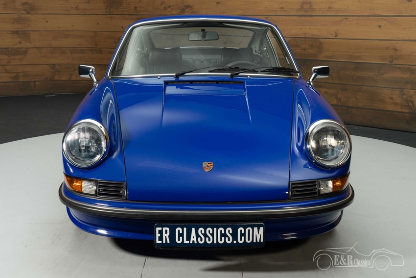 Blauwe Porsche 911T Coupe 2.4 te koop Het koetswerk is uitgevoerd in een opvallende blauwe lak die prachtig contrasteert met het strakke zwarte lederen interieur. De originele Fuchs velgen maken het tijdloze silhouet compleet en benadrukken de sportieve elegantie van dit model. Binnenin straalt het interieur dezelfde klasse uit, met fraai gerestaureerde bekleding, een klassiek dashboard en originele details die perfect harmoniëren met het exterieur. Deze Porsche 911T combineert esthetiek, vakmanschap en historie voor een unieke rijervaring.