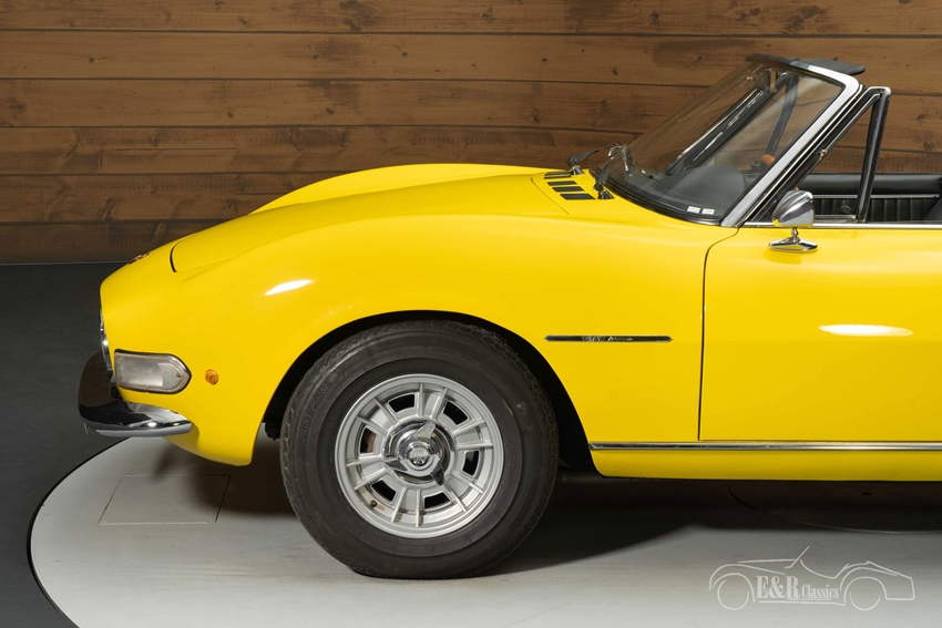 Gele Fiat Dino Spider 2000 te koop Het exterieur is uitgevoerd in opvallend geel lakwerk, dat prachtig contrasteert met de donkergroene lederen bekleding en de zwarte soft top. De carrosserie, ontworpen en gebouwd door Pininfarina, straalt elegantie en sportiviteit uit vanuit elke hoek. De klassieke wielen met originele wieldoppen versterken het tijdloze karakter. Binnenin wordt het Italiaanse designgevoel voortgezet: het houten stuurwiel, de zwarte metertjes en het lederen interieur vormen een perfect geheel met de zonnige buitenzijde. Alles ademt authenticiteit en stijl — dit is een auto die gezien mag worden én fantastisch rijdt.