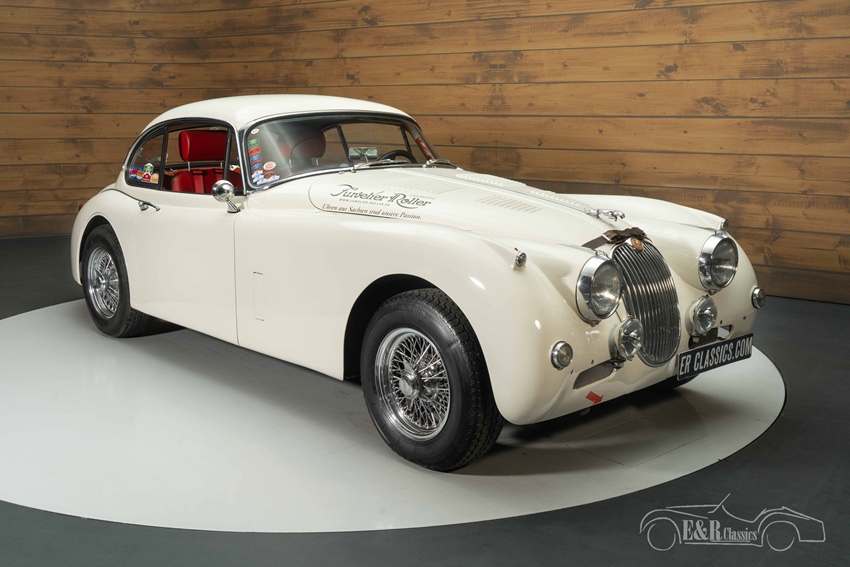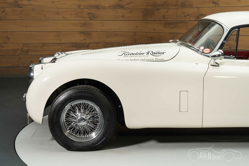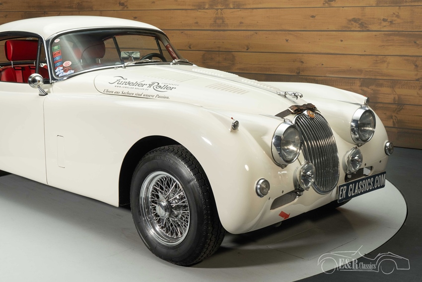 Jaguar XK150 Coupe in Old English white te koop Het lakwerk in stijlvol Old English White vormt een prachtig contrast met het rode lederen interieur. De sportstoelen zorgen voor extra zijdelingse steun en comfort tijdens ritten, terwijl het exclusieve wortelnotenhouten dashboard, de gemonteerde Trippmaster en sfeervolle interieurverlichting het geheel een luxe én functionele uitstraling geven. Spaakwielen met brede 205-banden zorgen voor meer grip, en de extra verstralers maken deze Jaguar uitermate geschikt voor nachtrally’s. Louvres in de motorkap onderstrepen het sportieve karakter, en originele onderdelen zoals de bumpers en stoelen zijn inbegrepen. Een elegante en complete klassieker, klaar voor rally's of stijlvolle ritten.