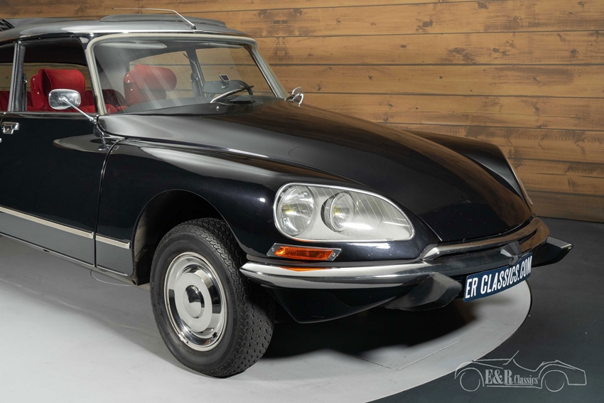 Citroën DS20 met schuifdak te koop Qua uitstraling heeft dit exemplaar alles wat een liefhebber zoekt. Het zwarte lakwerk geeft de DS20 een chique en stijlvolle aanwezigheid, prachtig in contrast met het opvallende rode stoffen interieur. Het interieur straalt Franse elegantie uit en vormt samen met het schuifdak een uitnodigende en lichte ambiance. Aan de buitenzijde maken de Pallas wieldoppen het geheel compleet en versterken ze de luxe uitstraling van deze bijzondere klassieker. Een DS20 in deze conditie, met zo’n geslaagde restauratie en stijlvolle uitvoering, is een zeldzame vondst.