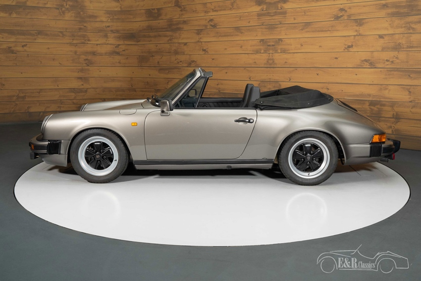 Porsche 911 SC Cabriolet uit 1983 te koop Qua uiterlijk straalt de auto pure klasse uit met zijn originele Antraciet Grijs metallic lakwerk, dat opnieuw is gespoten en prachtig combineert met de zwarte soft top en zwart lederen interieur. Het samenspel van kleuren benadrukt de sportieve maar toch stijlvolle uitstraling van deze klassieker. De gerestaureerde Fuchs velgen, maken het plaatje compleet en versterken de authentieke look. Het interieur ademt luxe en originaliteit, met strak lederen bekleding en de originele details zoals men dat mag verwachten van een Porsche uit deze periode. Ook is er gedacht aan comfort: de auto is uitgerust met airconditioning en voorzien van een nieuwe aircopomp. Een schitterend voorbeeld van de iconische 911 SC Cabriolet, klaar voor vele jaren rijplezier.