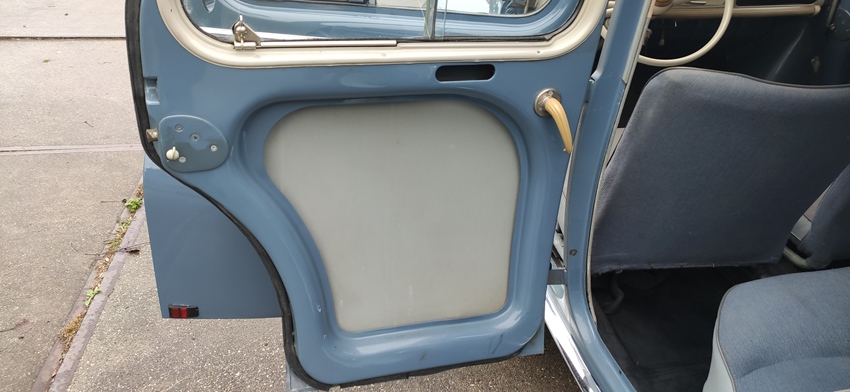 Evenals de grotendeels originele bekleding, rubberen matten set, de kartonnen deurbekleding, één mistlamp in combinatie met de claxon op de bumper. Verder gelukkig geen poespas, zelfs geen radio.