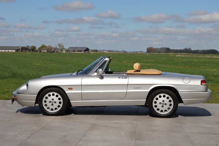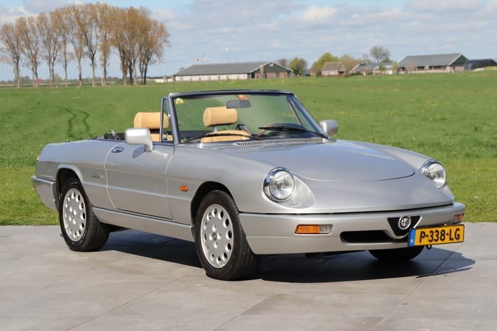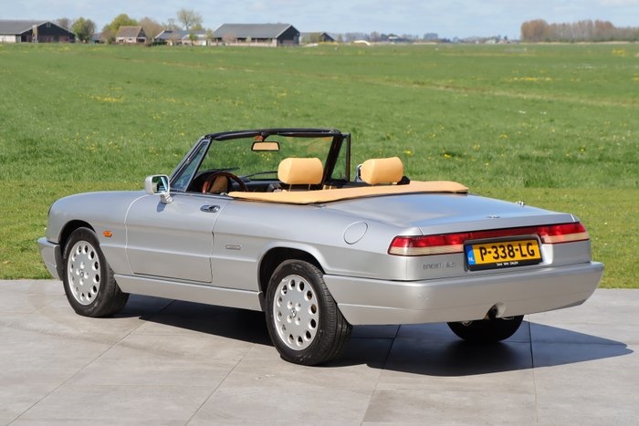 Alfa Romeo Spider 2.0 Veloce 1992 - Veloce met 2.0-liter 4-cilinder motor - Laatst gebouwde serie (Ultima/Bella) - Lage kilometerstand van 107.736 - Comfortabele hardtop - Grigio Chiaro Metallic - Beige half-lederen interieur - Originele aflever- en serviceboekjes aanwezig - Laatste grote onderhoudsbeurt (t.w.v. € 1.300,-) in 2022 HISTORIE/DOCUMENTATIE: Deze prachtige Spider is nieuw geleverd in Boulogne-Sur-Mer (Frankrijk) op 12 oktober 1992. De kilometerstand duidt erop dat de auto slechts voor tour- of vakantieritten is gebruikt. In 2022 is de auto geïmporteerd naar Nederland, waar hij sindsdien in bezit is geweest van een Alfa Romeo liefhebber. Bij de auto zijn nog originele aflever-, service en instructieboekjes aanwezig. Dankzij de ingevulde servicebeurten is de historie duidelijk en de kilometerstand logisch. Bij de auto zijn ook onderhoudsfacturen aanwezig. EXTERIEUR: De Alfa is stijlvol uitgevoerd in Grigio Chiaro metallic (zilver) lakwerk en kenmerkende Alfa Romeo velgen. De bijbehorende hardtop is dankzij de lichte constructie relatief eenvoudig te (de)monteren. Op het achterraam pronkt nog de originele Franse dealersticker. Het lakwerk verkeert in algemene goede staat, enkel de achterbumper heeft aan de linkerzijde een kleine beschadiging. De 15 inch lichtmetalen velgen verkeren allen in een goede staat. Het chroomwerk blinkt nog volop en de rubbers zijn nog gaaf. De zwarte softtop heeft enkele kleine gebruikerssporen, maar functioneert nog prima. De soft top kan keurig opgeborgen worden onder de beige tonneaucover. INTERIEUR: Het prachtige beige interieur verkeert in algehele goede staat: de half-lederen stoelen zijn onbeschadigd en de vloermatten zijn schoon. Ook het dashboard is nog fris, en is mooi uitgevoerd met gedeeltelijk beige en gedeeltelijk zwarte afwerking. Het prachtige 3-spaaks houten stuurwiel is de eyecatcher van het interieur. Zowel in de zon als onder de comfortabele hardtop is het hier goed vertoeven, en is het absoluut geen straf om kilometers te maken. De stoelen zitten heerlijk, en het interieur is verder voorzien van onder meer een Blaupunkt radio, elektrisch bedienbare spiegels en elektrisch bedienbare ramen. Ook de kofferruimte is netjes. In het onderste compartiment is het reservewiel geplaatst. Ook is er nog een kleiner compartiment aanwezig dat plaats biedt aan bijvoorbeeld gereedschap. TECHNISCH: De laatste onderhoudsbeurt is uitgevoerd in 2022, waarbij onder meer de remblokken, remschijven en banden aan de achterzijde zijn vervangen. Alle 4 banden zijn van het A-merk Contintal. De auto start, rijdt en schakelt naar behoren. Het karakter is vlot en sportief, maar ook comfortabel. De 1.962 cc 4-cilinder injectiemotor levert 123 pk en brengt de Alfa in 9,4 seconden naar 100 km/u. Onder de motorkap oogt het fris, schoon en droog. De auto heeft zich dan ook uitstekend bewezen op vakantieritten naar Italië, waarvan hij in 2025 naar Nederland is gereden. Een betere auto om te flaneren rond bijvoorbeeld de Italiaanse meren of de Côte d'Azur kunnen wij ons haast niet voorstellen! ALGEMENE INFORMATIE: De inmiddels befaamde Alfa Romeo Spider werd geïntroduceerd op 10 maart 1966 op de Autosalon in Geneve. Het was de opvolger van de Giulietta Spider, en was de eerste serie uit de in totaal 4 series die uiteindelijk gebouwd zouden gaan worden. De 4e en laatste serie werd slechts gebouwd van 1990 tot en met 1993. Er waren 2 motoren beschikbaar: een 1,6-liter en 2,0-liter 4-cilinder. Modellen met de 2-liter motor kregen de naam Veloce (wat Italiaans is voor 'snel') en is vanzelfsprekend het krachtigst. De combinatie van kracht, vermogen en souplesse maakt deze motor het meest geliefd. Het ontwerp is afkomstig van de befaamde designer Pininfarina.