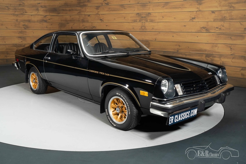 Chevrolet Cosworth Vega in zeer goede, originele staat te koop Qua uitstraling is deze Cosworth Vega een echte blikvanger. De diepzwarte lak combineert prachtig met de gouden striping en de originele goudkleurige aluminium velgen, een exclusieve afwerking die enkel aan deze uitvoering werd toegekend. Het sportieve interieur is volledig uitgevoerd in zwart lederlook met kenmerkend doorgestikte stoelen en een opvallend goudkleurig dashboard — een subtiele verwijzing naar zijn exclusieve karakter. Een bijzonder stijlvolle en authentieke presentatie van een auto die vandaag de dag zelden meer in deze staat wordt aangetroffen.