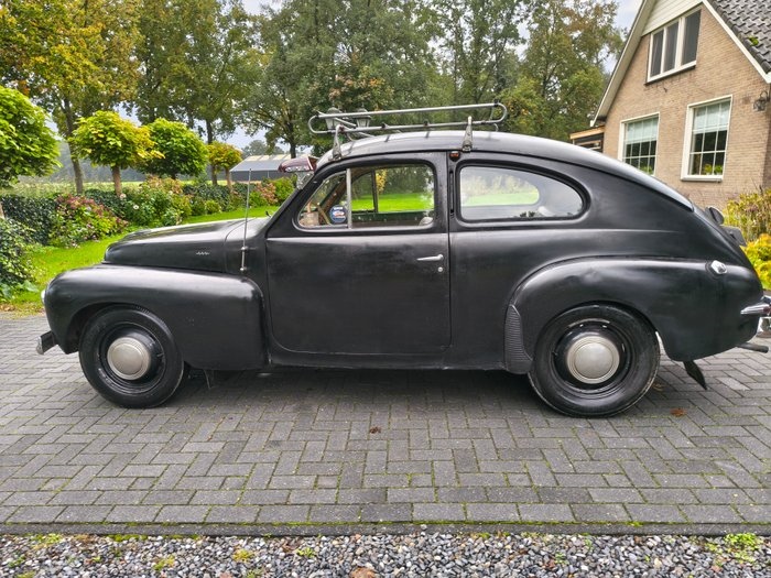 NO RESERVE PRICE, DE AUTO WORDT DUS IN IEDER GEVAL VERKOCHT Bent u op zoek naar een zeer bijzondere Volvo PV, mis deze dan niet! Deze Volvo PV is uit de A serie, dus de aller-eerste serie van PV modellen. Te herkennen aan de 16 inch wielen, de bumpers uit 1 stuk, de uitklapknipperlichten en vooral de aparte plaatsing van de ruitenwissers. De heilige graal van de Volvo PV modellen, zo noemen kenners deze auto. Een werkelijk unieke auto, deze schitterende Volvo PV 444 van bouwjaar 1947. Leuke opties zijn de zonnekap en de tijdsgebonden imperiaal en autoradio. Documenten: De auto heeft een afgemelde Zweedse registratie, en kan met de aanwezige papieren gemakkelijk elders worden geregistreerd. De auto heeft altijd in Zweden doorgebracht, en is enkele weken geleden naar Nederland gekomen, de auto is tot voor kort voor recreatieve doeleinden gebruikt Deze Volvo heeft maar 4 eigenaren gehad, inklusief een Volvo dealer die de auto heeft ingeruild. De laatste eigenaar heeft de auto sinds 2017 gehad, en vanwege de hoge leeftijd van die eigenaar wordt de auto nu verkocht. Carrosserie: De onderzijde van de auto is slechts gering aangepakt, meer was niet nodig. Het lakwerk is erg oud, met volop patina. Leuk om zo te houden, en gemakkelijk om te verbeteren. Het plaatwerk zelf is bijzonder goed gebleven. Echt een plaatje, zeker wanneer men beseft dat de auto al 78 jaar oud is (!) Het A model was alleen in het zwart te verkrijgen, met de groene dashboard en deur accenten. Techniek Hij heeft natuurlijk de bekende B4B 1.4 liter motor, gekoppeld aan een drieversnellingsbak die zeer goed schakelt. De remmen werken, onder andere de verlichting moet worden gecontroleerd. De auto verkeert in een vergaand originele staat. De benzine is oud, en toch rijdt ie er prima op. Natuurlijk zijn nieuwe filters en vloeistoffen aan te raden. De autoradio is niet op functioneren getest. Interieur Bij dit model was de houten bekisting voor het reservewiel in de kofferbak standaard. Wat opmerkelijk is, is dat het nog de originele houten bekisting is, want de toen gebruikte houtsoort was niet erg vochtbestendig, en viel snel uit elkaar. Een indicatie hoe spaarzaam de auto is gebruikt. Ooit is de bekleding van de rechtervoorstoel vervangen, en ook deels die van de achterbank door een bekleding van een later model. De rubber vloermatten en zij-panelen van de deuren enzovoort zijn erg netjes, net als de hemelbekleding. Opmerking: Het leuke van oude Volvo's is dat heel veel onderdelen nog steeds nieuw als ook gebruikt te koop zijn. De verkoper heeft vele contacten in binnen en buitenland en kan behulpzaam zijn onderdelen en spareparts te leveren. Transport: De auto staat in Hengevelde, Nederland en kan hier vanzelfsprekend worden opgehaald. De auto kan tegen meerprijs van 150 euro in Nederland worden bezorgd (excl. De Waddeneilanden) Voor de buitenlandse bieders : Bezorging/transport: Verkoper kan de auto relatief goedkoop in de hele EU laten bezorgen door een professionele transporteur.