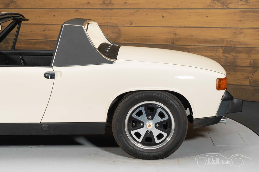 Porsche 914 met originele airconditioning te koop De auto is opnieuw gespoten in 2021 en verkeert in uitstekende conditie. De lak glanst prachtig in combinatie met het zwarte afneembare targa dak – een kenmerkend detail van de 914. De originele Fuchs-velgen, de subtiele chromen accenten en de gele mistlampen versterken het sportieve karakter. Binnenin is het vernieuwde interieur uitgevoerd in stijlvol zwart met stoffen middenpanelen die het originele patroon behouden. De originele airconditioning maakt het geheel compleet en comfortabel.