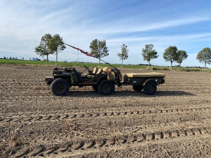 ALGEMEEN: Willys Jeep met aanhanger, een complete set inclusief aankleding. Het gaat om een Amerikaanse Willys uit bouwjaar 1947, voorzien van een Duitse Mercedes 200D dieselmotor. De auto heeft een Belgische registratie, waarbij ook diesel officieel op het kenteken staat vermeld. CARROSSERIE/LAKWERK: De carrosserie is in goede staat maar vertoont gebruikssporen zoals krassen en deuken. Het betreft een oudere restauratie. De auto wordt geleverd met huif, winterdeuren en halve deurtjes. De huif en deurtjes hebben wat beschadigingen, maar er is canvas aanwezig voor eventuele reparaties. TECHNISCH: Technisch verkeert de Jeep in goede staat en is voorzien van veel nieuwe onderdelen, waaronder remmen, olie en filters. De 4x4 aandrijving functioneert goed, inclusief hoge en lage gearing. INTERIEUR: Binnenin is de Jeep ingericht als WO2-tribute met veel originele details en onderdelen die teruggaan naar de oorlogsjaren. DOCUMENTEN: Belgisch kenteken aanwezig, geregistreerd als diesel. AFHALING: De auto kan bezichtigd en opgehaald worden in Bruinisse. Transport kan in overleg verzorgd worden. OVERIGE INFORMATIE: De set komt zeer compleet, zoals te zien op de foto's en video's, inclusief alle aankleding en extra (nieuwe) onderdelen. Zelden worden zulke complete exemplaren aangeboden. Video's: https://youtu.be/rTomHivpHrw?si=jM564zEpOs1vnCHX https://youtu.be/cFU_WqEMMWQ?si=86MRU0TLaOxvMBO