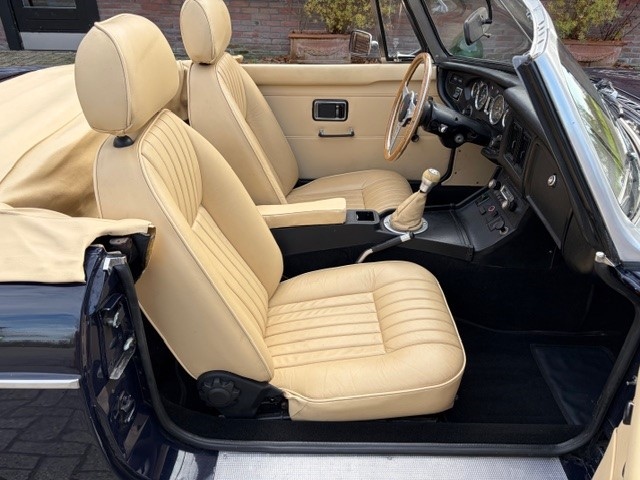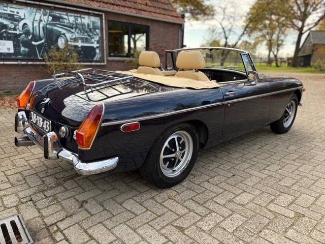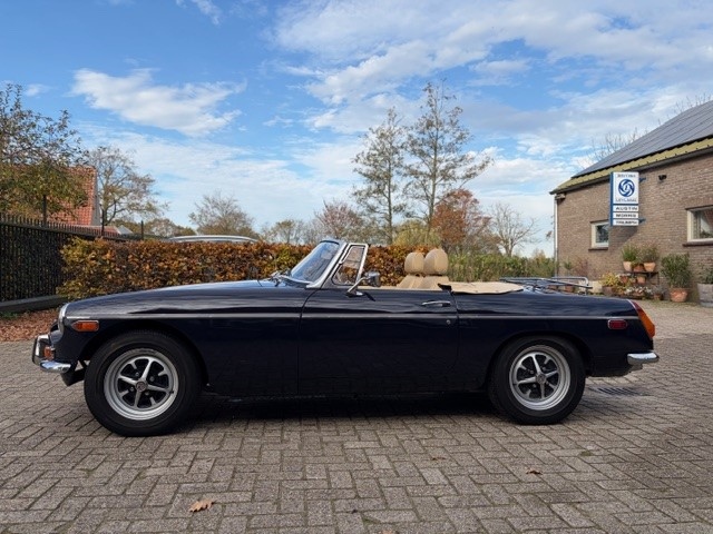 Prachtige MGB chromen bumper met overdrive uit 1973 in de mooiste kleur, Royal Blue. Deze MG heeft tot nu toe slechts 2 eigenaren gehad, de laatste eigenaar heeft hem 23 jaar in zijn bezit gehad. De auto is in het verleden gerestaureerd en verkeert nog steeds in uitstekende staat, zeker gezien zijn leeftijd van 52 jaar. Het lakwerk is perfect, prachtig bewaard gebleven. Er is geen enkele roest te bekennen. De motor en overdrive versnellingsbak zijn destijds volledig gereviseerd. Alles is gloednieuw en fris. De auto is uitgerust met Europese SU HS4 carburateurs. De overdrive versnellingsbak schakelt als nieuw. De hele auto is zeer goed onderhouden bij een Nederlandse oldtimergarage, gespecialiseerd in Britse klassiekers. Het interieur is, net als de rest van de auto, als nieuw. Het beige interieur past perfect bij de blauwe lak. De stoelen zijn nagenoeg nieuwe leren stoelen met geweldige zijdelingse steun. De bijpassende beige sierpanelen maken de klassieke cockpit compleet. Een nette tapijtset en een Moto Lita stuurwiel zijn gemonteerd voor de finishing touch. Alle meters zijn allemaal in perfect werkende staat. De auto staat op de periodecorrecte, gereviseerde Rostyle velgen. Het chroomwerk rondom is in zeer goede staat. Deze beauty is voorzien van een zwarte vinyl kap en een beige hoodcover, die perfect matched met het beige interieur. Wie zorgeloos wil rijden, heeft zojuist zijn auto gevonden!