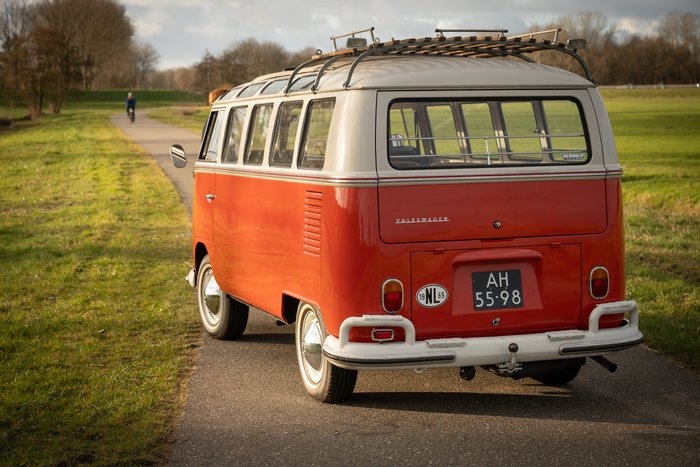 BODYWORK & EXTERIOR: Offered here is a truly iconic example of the Volkswagen Type 2: an original 21-window 'Samba' Splitscreen finished in an eye-catching two-tone orange and cream colour scheme. This T1 underwent a full restoration and presents today with a vibrant, well-maintained finish showing only minor age-related signs of use, in keeping with its cherished history. Notably, this Samba was originally delivered to an Austrian taxi and bus company, who equipped it with custom bumpers and a front-mounted spare wheel to maximise luggage space—features still present today, contributing to the vehicle's unique provenance. MECHANICAL CONDITION: Power is provided by an upgraded 1641cc air-cooled flat-four engine with dual Weber carburettors and an external oil cooler, paired to a four-speed manual gearbox. The engine runs smoothly and delivers noticeably enhanced performance over the standard unit. Importantly, the original numbers-matching 1493cc engine has been professionally rebuilt and is included in the sale. The most recent routine service was carried out at approximately 62,000 km. While there is no formal service history due to long-term family ownership, the vehicle has been maintained diligently, regularly driven, and always kept garaged. INTERIOR & FEATURES: The interior has been retrimmed in orange and black vinyl and remains in excellent condition throughout. The beige headliner, body-coloured dashboard, and chrome highlights complete the classic look. This example is configured in an 8-seater layout with two rear bench seats. Period-correct and tasteful upgrades include: Roll-back fabric sunroof Westfalia-style metal and wood roof rack Two-spoke steering wheel with gold Wolfsburg crest Sliding side windows and front pop-out quarter lights Front roof-mounted taxi light Blaupunkt Augsburg CD stereo system with upgraded front/rear speakers and dash-mounted tweeters Electown cassette stereo (retained) Analogue Kienzle dashboard clock Aftermarket oil pressure and temperature gauges Tow hitch PROVENANCE & DOCUMENTATION: Originally delivered new in Austria by Porsche of Austria, this T1 Samba comes with extraordinary provenance. The original sales documentation is still present and notably signed by Louise Piëch, daughter of Ferdinand Porsche—a rare and historic touch. First registered in February 1965, it was imported to the Netherlands in January 2001 and has been with its third long-term owner since 2003, remaining in the same family ever since. Included in the sale: Original stamped owner's booklet Original, rebuilt 1493cc engine Austrian registration documentation Various documents confirming early ownership and restoration history SUMMARY: A beautifully presented and mechanically upgraded example of the desirable T1 'Samba' 21-Window Splitscreen. This is a true collector's piece with remarkable provenance, a sympathetic restoration, and tasteful enhancements for usability and performance. Whether added to a discerning collection of iconic classics or used as a stylish and practical weekend companion, this Volkswagen Samba offers rare heritage, timeless design, and unmistakable character.