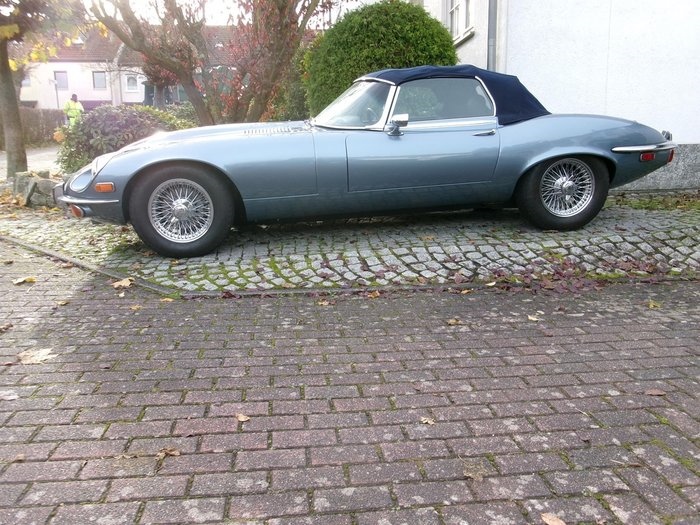 Jaguar E-Type Serie III V12 Roadster – 1973 – Matching Numbers – Volledig gerestaureerd ALGEMEEN Te koop staat een Jaguar E-Type Serie III V12 Roadster uit 1973, volledig matching numbers, ongelukvrij en sinds 6 jaar in mijn bezit. De auto is in 1999 aangeschaft en is sindsdien uitsluitend in een privécollectie gehouden. Hij is alleen gebruikt voor onderhouds- en testritten en is door de jaren heen regelmatig verzorgd. Alle bonnetjes en facturen van de uitgevoerde werkzaamheden zijn aanwezig. De eerste levering vond plaats in de VS. Al zeer vroeg werd de auto door de eerste eigenaar opnieuw gespoten en bevindt zich sindsdien in zijn originele en uiterst zeldzame Jaguar-kleur 'Jaguar Lavender Blue / Ice Blue Metallic'. De lak is in 2004 volledig vernieuwd. De loopafstand bedraagt oorspronkelijk 31.922 mijl (˜ 51.394 km); de tachoschijf werd later vervangen door een km-aanduiding. KAROSSERIE & LACK: De Jaguar was bij aankoop ongevallenvrij en volledig roestvrij – en verkeert dankzij vakkundige verzorging tot op heden in deze staat. De lak in Lavender Blue / Ice Blue Metallic ziet er zeer goed onderhouden uit en past bij de hoogwaardige restauratie. Chassis- en onderstelonderdelen zijn gepulverd, wat zowel de uitstraling als de duurzaamheid ten goede komt. Gemonteerd zijn centrale vergrendelingsspaakwielen, de originele Dunlop-velgen maken ook deel uit van de levering. De banden zijn bijna nieuw. techniek Onder de motorkap werkt de legendarische 5,3-liter V12-motor, die in 2018/2019 volledig is gereviseerd door de gerenommeerde motorenbouwer Ritterbecks (factuur aanwezig). Deze motorrevisie vond plaats volgens de bestaande waardebepaling uit 2018, waarde: € 120.000. De wagen is technisch uitstekend uitgerust. - Weber IDF carburetor systeem met speciale inlaatmanifolds (TÜV-keuring aanwezig, originele onderdelen inclusief) - Professionele afstelling van de carburateurs in juli, uitgevoerd door de Weber-hoofdaankoopagent Viktor Günther, Keulen - 5-gang sportversnellingsbak van Getrag, volledig gereviseerd door Getrag (factuur aanwezig) Inclusief origineel 4-versnellingsbak. Grote inspectie in mei 2025, alle vloeistoffen en bougies vervangen. De E-Type presenteert zich technisch in uitstekende staat: krachtig, goed afgesteld, betrouwbaar en klaar voor direct gebruik. Interieur Het interieur is uitgevoerd in donkerblauw volleder met zwarte keder. Het donkerblauwe tapijt past daar harmonieus bij, eveneens met zwarte keder. Het premium Sonnenland-verdeck in donkerblauw verkeert in uitstekende staat. Alle vervangen onderdelen – waaronder het oude leer, tapijten, kap, velgmoeren en andere onderdelen – zijn aanwezig en maken deel uit van het voertuig. Documenten Het voertuig omvat: Jaguar Heritage Certificate - Taxatierapport van 2018 - Uitgebreide facturatie- en documentatiecollectie van 26 jaar TÜV-rapport voor de Weber-vergasers - Bewijzen van de motorrevisie, Getrag-gearrevisie en alle onderhoudswerkzaamheden. De Jaguar is volledig matching numbers en uitzonderlijk goed gedocumenteerd. Afhaling Het voertuig kan na afspraak in Friedrichsdorf/Taunus (Duitsland) worden bezichtigd. Een persoonlijke bezichtiging wordt dringend aanbevolen om de uitstekende algehele staat van dit voertuig zelf te ervaren. Verdere informatie Deze Jaguar E-Type Serie III V12 Roadster behoort tot de beste en meest complete exemplaren die tegenwoordig te vinden zijn. Een volledig gerestaureerde, matching-numbers-versie met recente motorrevisie, uitgebreide documentatie en alle originele onderdelen. Een ideaal verzamelobject – technisch en optisch uitmuntend, historisch waardevol en met een unieke eigendomsgeschiedenis van 26 jaar. Een E-Type, zoals je hem slechts uiterst zelden aangeboden krijgt.