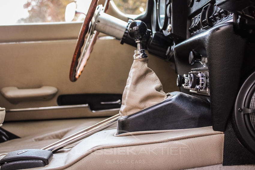 Het interieur van deze Jaguar E-Type series 2 is eveneens in uitzonderlijk perfecte conditie. Tijdens de restauratie is de complete interieurbekleding (vloerbekleding, hemelbekleding, stoelen, deurpanelen, etc.) volledig vernieuwd in de originele beige kleur. De beige lederen stoelen zijn in nieuwstaat en zitten perfect en comfortabel. Ook de diverse chroom- en sierdelen zijn in absolute nieuwstaat. Het dashboard is schitterend om te zien en alle instrumenten werken uiteraard naar behoren. Tijdens de restauratie is de dashboardverlichting vervangen voor betrouwbare LED verlichting. De schitterende en bijpassende Classic Retro radio heeft MP3 functie en er is een Moral speakersysteem op aangesloten. Het houten stuurwiel is niet alleen schitterend om te zien, maar vormt ook een perfecte combinatie met het interieur.