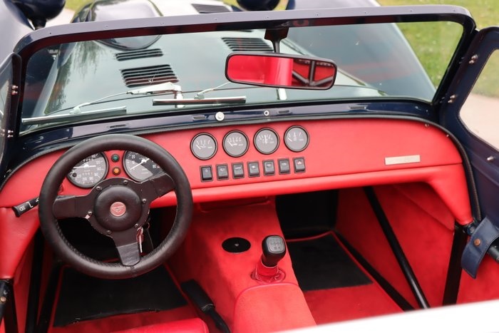 Donkervoort S8 1990 - In bezit geweest van Donkervoort tot 1999 - Reeds 26 jaar in bezit geweest van de tweede en huidige eigenaar - Fraaie en smaakvolle kleurstelling in donkerblauw met rood interieur - Elektrische koelventilator - Tonneaucover en rollbar - Roestvrijstalen uitlaat - APK tot 14 mei 2027 - Legendarische sportauto van Nederlandse bodem HISTORIE/DOCUMENTATIE De S8 (Super Eight) was het tweede productiemodel van het destijds jonge en Nederlandse autobedrijf Donkervoort, dat nog altijd bestaat. Het was een sterk verbeterde auto van zijn voorganger en is daarmee één van de bekendste en succesvolle modellen van Donkervoort. Dit exemplaar is gebouwd in 1990 en is tot 1999 in bezit geweest van Donkervoort zelf, die nadien nog enkele verbeteringen aan de auto heeft toegepast. In feite was dit dus een demo-auto van Donkervoort. In 1999 is de auto in bezit gekomen van de tweede en huidige eigenaar, die de auto dus al 26 jaar heeft gekoesterd. Een auto die altijd met liefde en passie is bereden, en hierdoor in een nette staat bewaard gebleven. Dit blijkt ook uit het taxatierapport uit april 2025, waarin de auto een kwaliteitsaanduiding van 'Conditie 2+' verdient met een waarde van € 42.500,-. Bij de auto zijn onder meer ook vermogensonderzoeken aanwezig. EXTERIEUR De auto is uitgevoerd in donkerblauw met een rood interieur, wat zeer mooi contrasteert. Het lakwerk is nog netjes en er worden geen sporen van roest of schade aangetroffen. Ook het chroomwerk, de verlichting en de ruiten bevinden zich in nette staat: de prominente roestvrijstalen uitlaat waarin de naam van het model is gegrafeerd blinkt uitzonderlijk mooi. Ook de 5-spaaks 14” lichtmetalen velgen verkeren in een zeer nette staat. Kenmerkend zijn de robuuste rollbar en het reservewiel aan de achterzijde. INTERIEUR Ook het interieur bevindt zich in een nette staat zonder beschadigingen, maar slechts met lichte gebruikerssporen van de met leder bekleedde stoelen. Het met leder bekleedde dashboard biedt plaats aan 4 centraal geplaatste tellers, 7 centraal geplaatste knoppen en twee grote tellers die zijn geplaatst recht voor de bestuurder. Overzichtelijk en geen overdadigheid zoals het motto van Donkervoort betaamd: "No Compromise". De sofftop, tonneaucover, deurtjes, tapijtset en het overige interieur: alles bevindt zich in een nette en onbeschadigde staat. Achter de voorstoelen zijn een radio/cd-speler met speakers gemonteerd. TECHNISCH Onder de motorkap huist een 2.0-liter 4-cilinder motor afkomstig van Ford. Deze levert volgens de fabrieksopgave 110 pk, maar volgens een vermogensuitdraai uit 2008 levert deze motor maar liefst 142 pk. Bij het Speedcentre Geldermalsen is de auto destijds opnieuw afgesteld. In combinatie met een gewicht van 625 kg maakt dit de auto serieus snel, met een acceleratie van 0 naar 100 km/u in minder dan 6 seconden. De auto rijdt uitstekend en de motor is gekoppeld aan een goed schakelde 5-versnellingsbak. De Yokohama banden verkeren nog in prima staat. ALGEMEEN Het verhaal van Donkervoort begint in 1965, wanneer Joop Donkervoort op weg van school naar huis een Lotus 7 ziet en hierdoor gefascineerd raakt. De droom om een betere sportauto te ontwikkelen leidde uiteindelijk in 1978 officieel tot de oprichting van het automerk en de productie van het eerste model: de S7. De eerste auto's werden nog in een schuur achter diens woning gebouwd, maar in 1983 kon de productie worden opgeschaald met de verhuizing naar een fabriek in Loosdrecht. In 1980 werd de S8 onthuld: een meer doorontwikkelde auto met een sterkere motor en betere rijeigenschappen, wat leidde tot een groot succes. Veel autojournalisten roemden het model en zelfs in het Verenigd Koninkrijk noemden ze het model “The best Seven ever”. De rijeigenschappen zijn formidabel en ook aan veiligheid werd aandacht geschonken, door met name een dubbel remsysteem en twee aluminium brandstoftanks die zijn gemonteerd voor de achteras. Door de jaren heen heeft Donkervoort zich steeds verder ontwikkeld, waardoor het in 2004 zelfs een Nürburgring record behaalde. Tot op heden is Donkervoort nog volop actief, met onder meer de indrukwekkende F22 die sinds 2022 wordt gebouwd.