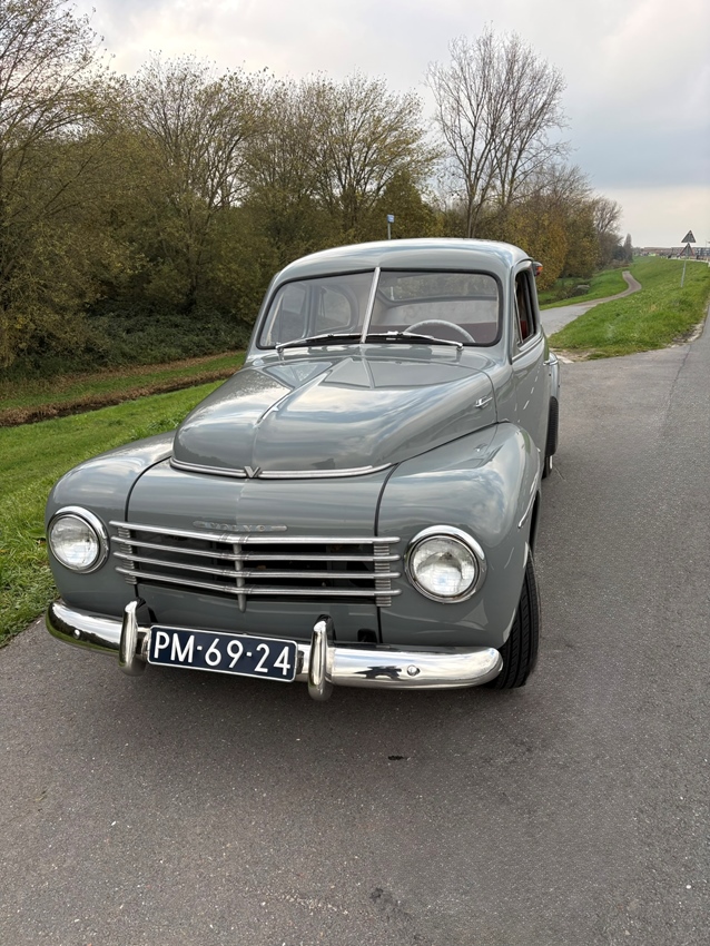 Te koop aangeboden: een prachtige Volvo PV444 uit 1955, geïmporteerd uit Zweden in 2023. Dit betreft een bijzonder mooi bewaard exemplaar in zeer nette en originele staat, zowel technisch als optisch.