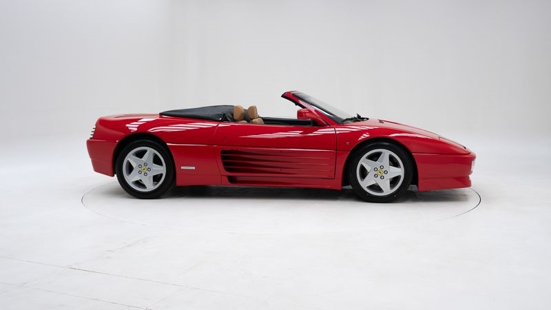 De Ferrari 348 Spider uit 1993 vertegenwoordigt een bijzonder belangrijke periode in de geschiedenis van Maranello. Als open variant van de 348-reeks werd de Spider slechts 1.146 keer gebouwd, wat hem tot het meest exclusieve model binnen de lijn maakt. De wagen geldt als één van de laatste puur analoge V8-Ferrari’s die nog onder toezicht van Enzo Ferrari werden ontwikkeld – met een transversale V8 centraal achterin, een handgeschakelde vijfversnellingsbak en een uitgesproken jaren ’90-design met Testarossa-invloeden.