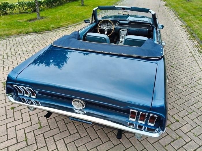 1967 Ford Mustang V8 289 Convertible - C Code ALGEMEEN: Te koop aangeboden: 1967 Ford Mustang V8 289 Convertible C-Code! Een prachtige klassieke Mustang in Night Mist Blue Metallic met een bijpassend blauw interieur en blauw cabrio dak – een zeer fraaie triple blue combinatie. Deze Mustang biedt de perfecte mix van stijl, kracht en rijplezier. De auto is voorzien van de krachtige V8 289 en combineert klassieke lijnen met een authentiek rijgevoel. CARROSSERIE & LAKWERK: De carrosserie verkeert in nette staat en is recent in Europa gespoten, volledig roestvrij met strakke lijnen. De Night Mist Blue Metallic lak, gecombineerd met het blauwe interieur en top, geeft deze Mustang een elegante en sportieve uitstraling. De auto oogt volledig verzorgd en klaar om te rijden en te showen. TECHNISCH: Onder de motorkap ligt de betrouwbare V8 289 C-Code, gekoppeld aan een soepele transmissie. De Mustang is voorzien van stuurbekrachtiging (power steering), een powertop voor eenvoudig openen van het cabrio dak, en een center console. De combinatie van techniek en uitrusting zorgt voor een klassieke rijervaring op hoog niveau. WIELEN/REMEN: De auto is uitgerust met White Wall banden en Styled Steel wielen, wat het klassieke karakter van de Mustang prachtig benadrukt. INTERIEUR: Het interieur is uitgevoerd in blauw, passend bij de lak en het cabrio dak, met comfortabele stoelen en een nette afwerking. De center console en originele details maken het geheel compleet en versterken de authentieke Mustang-beleving. DOCUMENTEN: Wordt geleverd met de benodigde documentatie die registratie in Europa mogelijk maakt. Exportdocumenten kunnen op aanvraag verzorgd worden. De auto is voorzien van een NL kenteken. AFHALING: De Mustang kan na afloop van de veiling worden opgehaald in Appingedam. Het transport kan in overleg geregeld worden. OVERIGE INFORMATIE: Deze 1967 Ford Mustang V8 289 Convertible C-Code in Night Mist Blue Metallic, met blauw interieur en blauwe cabriolet top, is een bijzondere klassieker. Uitgerust met stuurbekrachtiging, powertop, center console, White Wall banden en Styled Steel wielen, vormt dit exemplaar een uitstekende combinatie van stijl, comfort en rijplezier.